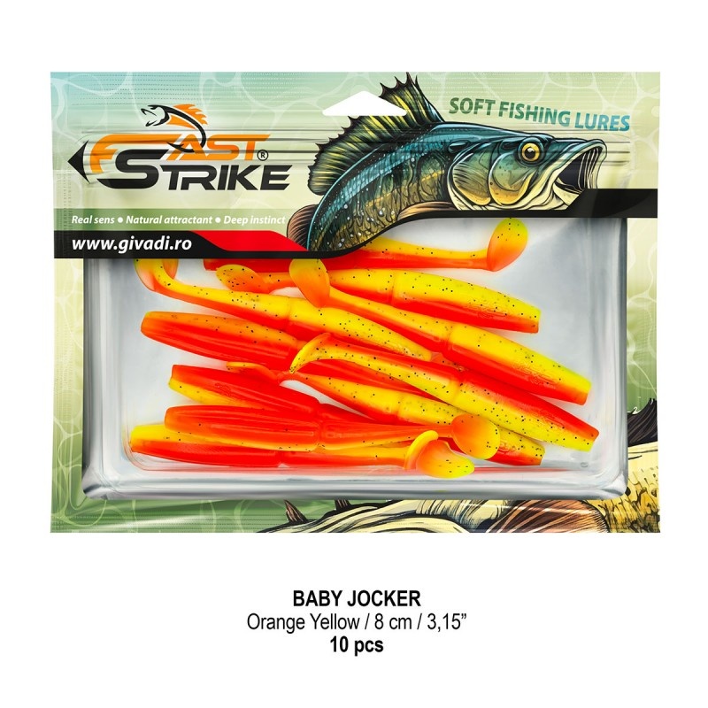 Fast Strike Baby Jocker 8 cm este o nălucă soft extrem de atractivă, concepută special pentru pescuitul la rapitori precum șalău, știucă, avat și chiar somn. Corpul segmentat în zona centrală îi oferă o evoluție naturală, asemănătoare unui pește pradă real, iar vibrațiile discrete, combinate cu reflexii agresive, declanșează atacuri chiar și în condiții dificile. Materialul premium, moale dar rezistent, păstrează perfect forma nălucii în timp și suportă multiple atacuri fără deteriorare. Baby Jocker este eficientă pe jig clasic, trena, ceaburaska, monturi articulate sau chiar chatterbait, ceea ce o face o alegere versatilă pentru orice tip de apă: lacuri, baraje sau râuri curgătoare. Nălucile sunt impregnate cu un miros atractiv, într-o formulă exclusivă, iar ambalarea în pungă cu fermoar + tavă rigidă menține forma perfectă și previne deformarea în timpul transportului. Fiecare shad poartă logo-ul Fast Strike turnat pentru garantarea originalității. ⭐ Caracteristici: ? Tip momeală: nălucă soft pentru rapitori ? Lungime: 8 cm ? Corp segmentat – evoluție naturală, vibrație realistă ? Material premium – flexibil, durabil, rezistent la UV ? Impregnată cu aromă atractivă ? Culoare: Orange Yellow ⚙️ Compatibilă cu jig clasic, ceaburaska, chatterbait, monturi articulate ? Ambalare: blister cu tavă rigidă + pungă cu fermoar ? Conținut: 10 buc/blister ? Potrivită pentru șalău, știucă, biban, avat, somn