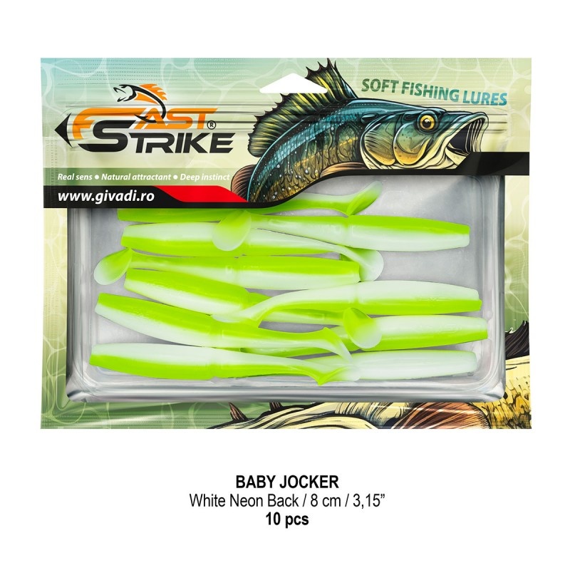 Fast Strike Baby Jocker 8 cm este o nălucă soft extrem de atractivă, concepută special pentru pescuitul la rapitori precum șalău, știucă, avat și chiar somn. Corpul segmentat în zona centrală îi oferă o evoluție naturală, asemănătoare unui pește pradă real, iar vibrațiile discrete, combinate cu reflexii agresive, declanșează atacuri chiar și în condiții dificile. Materialul premium, moale dar rezistent, păstrează perfect forma nălucii în timp și suportă multiple atacuri fără deteriorare. Baby Jocker este eficientă pe jig clasic, trena, ceaburaska, monturi articulate sau chiar chatterbait, ceea ce o face o alegere versatilă pentru orice tip de apă: lacuri, baraje sau râuri curgătoare. Nălucile sunt impregnate cu un miros atractiv, într-o formulă exclusivă, iar ambalarea în pungă cu fermoar + tavă rigidă menține forma perfectă și previne deformarea în timpul transportului. Fiecare shad poartă logo-ul Fast Strike turnat pentru garantarea originalității. ⭐ Caracteristici: ? Tip momeală: nălucă soft pentru rapitori ? Lungime: 8 cm ? Corp segmentat – evoluție naturală, vibrație realistă ? Material premium – flexibil, durabil, rezistent la UV ? Impregnată cu aromă atractivă ? Culoare: White Neon Back ⚙️ Compatibilă cu jig clasic, ceaburaska, chatterbait, monturi articulate ? Ambalare: blister cu tavă rigidă + pungă cu fermoar ? Conținut: 10 buc/blister ? Potrivită pentru șalău, știucă, biban, avat, somn