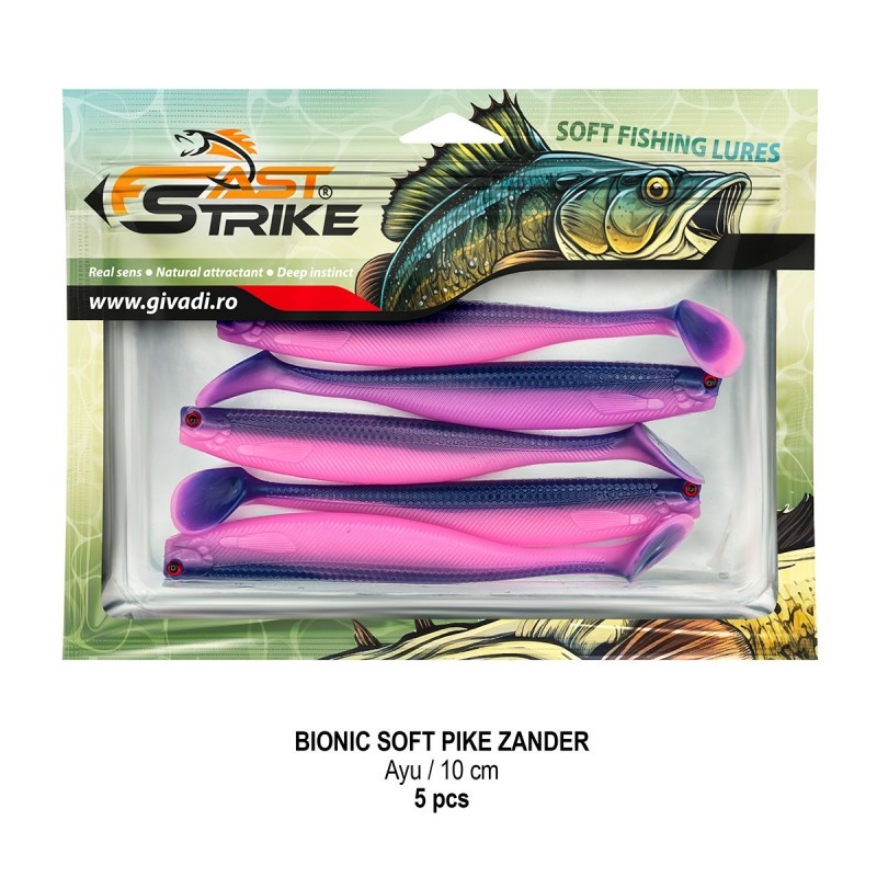 Fast Strike Bionic Soft Pike-Zander 10 cm este una dintre cele mai prinzătoare năluci pentru știucă și șalău , testată cu succes pe apele din România. Datorită unui proces tehnologic avansat , shad-ul oferă o evoluție extrem de naturală și o flexibilitate superioară, motiv pentru care a fost ambalat în seturi de 5 bucăți , fiind o momeală premium apreciată de pescarii experimentați. Materialul foarte moale , detaliile realiste precum solzii în miniatură , ochii 3D și coada de tip paddle , creează o vibrație constantă și agresivă , ideală atât în recuperări lente cât și rapide. Datorită acestei acțiuni, momeala este eficientă în orice moment al zilei, iar seara reușește să atragă chiar și bonusuri de talie mare. Nălucile sunt impregnate cu miros natural atractiv și ambalate în blister cu tavă rigidă , care menține forma perfectă și elasticitatea materialului în timpul depozitării. Este o alegere excelentă pentru pescuitul țintit de știucă și șalău , dar rămâne eficientă și la avat sau biban mare. ⭐ Caracteristici: ? Tip nălucă: shad soft ? Model: Fast Strike Bionic Soft Pike-Zander ? Lungime: 10 cm ⚖️ Greutate: 6 g ? Material: silicon moale, ultra-flexibil ?️ Ochi 3D + detalii realiste (solzi miniaturali) ? Coada paddle tail – vibrații constante și irezistibile ? Aroma: aditiv natural atractiv ? Culoare: AYU ? Ambalaj: 5 buc / blister ? Ideală pentru știucă, șalău , eficientă și la avat