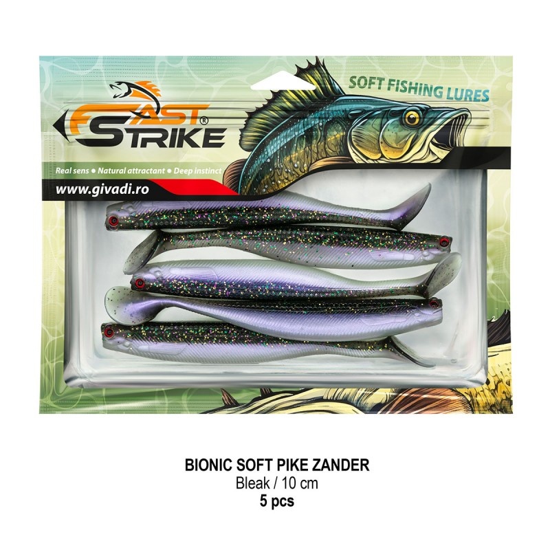Fast Strike Bionic Soft Pike-Zander 10 cm este una dintre cele mai prinzătoare năluci pentru știucă și șalău , testată cu succes pe apele din România. Datorită unui proces tehnologic avansat , shad-ul oferă o evoluție extrem de naturală și o flexibilitate superioară, motiv pentru care a fost ambalat în seturi de 5 bucăți , fiind o momeală premium apreciată de pescarii experimentați. Materialul foarte moale , detaliile realiste precum solzii în miniatură , ochii 3D și coada de tip paddle , creează o vibrație constantă și agresivă , ideală atât în recuperări lente cât și rapide. Datorită acestei acțiuni, momeala este eficientă în orice moment al zilei, iar seara reușește să atragă chiar și bonusuri de talie mare. Nălucile sunt impregnate cu miros natural atractiv și ambalate în blister cu tavă rigidă , care menține forma perfectă și elasticitatea materialului în timpul depozitării. Este o alegere excelentă pentru pescuitul țintit de știucă și șalău , dar rămâne eficientă și la avat sau biban mare. ⭐ Caracteristici: ? Tip nălucă: shad soft ? Model: Fast Strike Bionic Soft Pike-Zander ? Lungime: 10 cm ⚖️ Greutate: 6 g ? Material: silicon moale, ultra-flexibil ?️ Ochi 3D + detalii realiste (solzi miniaturali) ? Coada paddle tail – vibrații constante și irezistibile ? Aroma: aditiv natural atractiv ? Culoare: Bleak ? Ambalaj: 5 buc / blister ? Ideală pentru știucă, șalău , eficientă și la avat