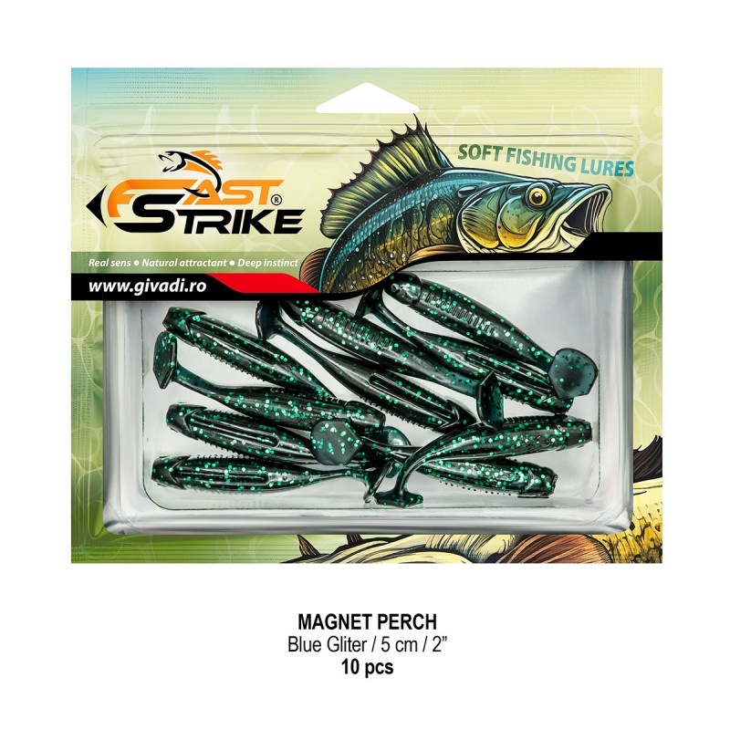 Fast Strike Magnet Perch 5 cm este o nălucă soft ultra-eficientă, creată pentru pescuitul la biban, șalău, știucă și avat, mai ales în zilele când rapitorii sunt apatici. Coada supradimensionată în formă de bănuț generează o vibrație agresivă și irezistibilă, transformând această nălucă într-un adevărat magnet pentru atacuri. Datorită materialului premium, moale dar rezistent, năluca își păstrează forma și flexibilitatea chiar și după multe capturi. Modelul este impregnat cu un atractant exclusiv Fast Strike, eficient în ape limpezi, tulburi sau slab luminate. Magnet Perch este ideală pentru lacuri, râuri, canale și baraje, fiind una dintre cele mai versatile și prinzătoare naluci din gama Fast Strike. Ambalarea în blister rigid + punguță resigilabilă menține forma perfectă și previne deformarea în timpul transportului și depozitării. ⭐ Caracteristici: ? Tip: nălucă soft (shad) ? Lungime: 5 cm ⚖️ Greutate: 1.6 g ? Coada tip bănuț – vibrație agresivă, mișcare realistă ? Material premium – moale, durabil, rezistent la UV ? Impregnată cu atractant personalizat Fast Strike ? Ideală pentru lacuri, râuri, canale, baraje ? Culoare: Blue Gliter ? Ambalare: blister rigid + tavă + punguță cu fermoar ? Conținut: 10 buc/blister