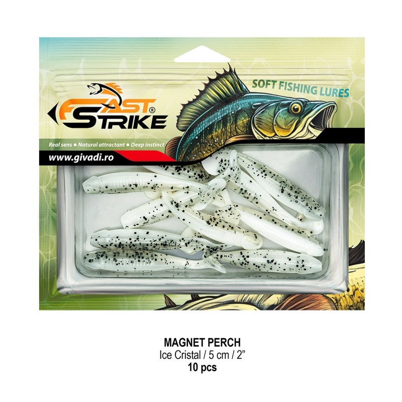 Fast Strike Magnet Perch 5 cm este o nălucă soft ultra-eficientă, creată pentru pescuitul la biban, șalău, știucă și avat, mai ales în zilele când rapitorii sunt apatici. Coada supradimensionată în formă de bănuț generează o vibrație agresivă și irezistibilă, transformând această nălucă într-un adevărat magnet pentru atacuri. Datorită materialului premium, moale dar rezistent, năluca își păstrează forma și flexibilitatea chiar și după multe capturi. Modelul este impregnat cu un atractant exclusiv Fast Strike, eficient în ape limpezi, tulburi sau slab luminate. Magnet Perch este ideală pentru lacuri, râuri, canale și baraje, fiind una dintre cele mai versatile și prinzătoare naluci din gama Fast Strike. Ambalarea în blister rigid + punguță resigilabilă menține forma perfectă și previne deformarea în timpul transportului și depozitării. ⭐ Caracteristici: ? Tip: nălucă soft (shad) ? Lungime: 5 cm ⚖️ Greutate: 1.6 g ? Coada tip bănuț – vibrație agresivă, mișcare realistă ? Material premium – moale, durabil, rezistent la UV ? Impregnată cu atractant personalizat Fast Strike ? Ideală pentru lacuri, râuri, canale, baraje ? Culoare: Ice Cristal ? Ambalare: blister rigid + tavă + punguță cu fermoar ? Conținut: 10 buc/blister
