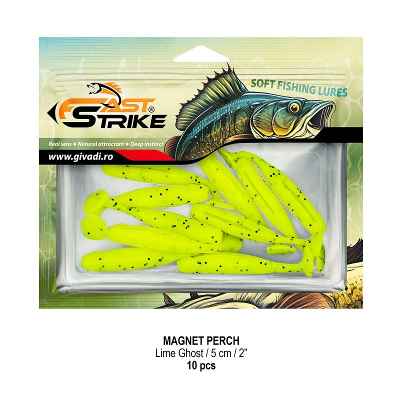 Fast Strike Magnet Perch 5 cm este o nălucă soft ultra-eficientă , creată pentru pescuitul la biban, șalău, știucă și avat , mai ales în zilele când rapitorii sunt apatici. Coada supradimensionată în formă de bănuț generează o vibrație agresivă și irezistibilă , transformând această nălucă într-un adevărat magnet pentru atacuri. Datorită materialului premium , moale dar rezistent, năluca își păstrează forma și flexibilitatea chiar și după multe capturi. Modelul este impregnat cu un atractant exclusiv Fast Strike , eficient în ape limpezi, tulburi sau slab luminate. Magnet Perch este ideală pentru lacuri, râuri, canale și baraje , fiind una dintre cele mai versatile și prinzătoare naluci din gama Fast Strike. Ambalarea în blister rigid + punguță resigilabilă menține forma perfectă și previne deformarea în timpul transportului și depozitării. ⭐ Caracteristici: ? Tip: nălucă soft (shad) ? Lungime: 5 cm ⚖️ Greutate: 1.6 g ? Coada tip bănuț – vibrație agresivă, mișcare realistă ? Material premium – moale, durabil, rezistent la UV ? Impregnată cu atractant personalizat Fast Strike ? Ideală pentru lacuri, râuri, canale, baraje ? Culoare: Lime Ghost ? Ambalare: blister rigid + tavă + punguță cu fermoar ? Conținut: 10 buc/blister