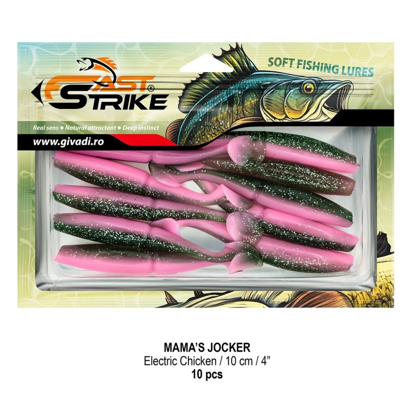 Fast Strike Mama’s Jocker 10 cm este o nălucă soft extrem de atractivă, concepută pentru pescuitul la șalău, știucă, avat și, ocazional, somn. Corpul segmentat în zona centrală produce o evoluție naturală, foarte apropiată de mișcarea unui pește pradă, iar vibrațiile discrete combinate cu reflexii agresive provoacă atacuri chiar și din partea rapitorilor apatici. Materialul premium, moale dar rezistent, face ca momeala să suporte multiple atacuri și să-și păstreze forma în timp. Mama’s Jocker este eficientă pe jig clasic, monturi articulate, ceaburaska sau chiar chatterbait, fiind potrivită pentru lacuri, baraje și ape curgătoare. Nălucile sunt impregnate cu o aromă atractivă, într-o formulă exclusivă. Ambalarea în blister cu tavă rigidă și pungă cu fermoar păstrează forma perfectă a shad-ului și previne deformarea în timpul transportului. Fiecare momeală are logo-ul Fast Strike turnat, pentru garantarea originalității. ⭐ Caracteristici: ? Tip momeală: nălucă soft pentru rapitori ? Lungime: 10 cm ? Corp segmentat pentru evoluție naturală ? Material premium – flexibil, rezistent, durabil ? Rezistent la raze UV și condiții submerse dificile ? Impregnată cu aromă atractivă ? Culoare: Electric Chicken ⚙️ Compatibilă cu jig clasic, ceaburaska, chatterbait ? Ambalare: blister cu tavă rigidă + punga cu fermoar ? Conținut: 10 buc/blister ? Ideală pentru șalău, știucă, biban, avat, somn
