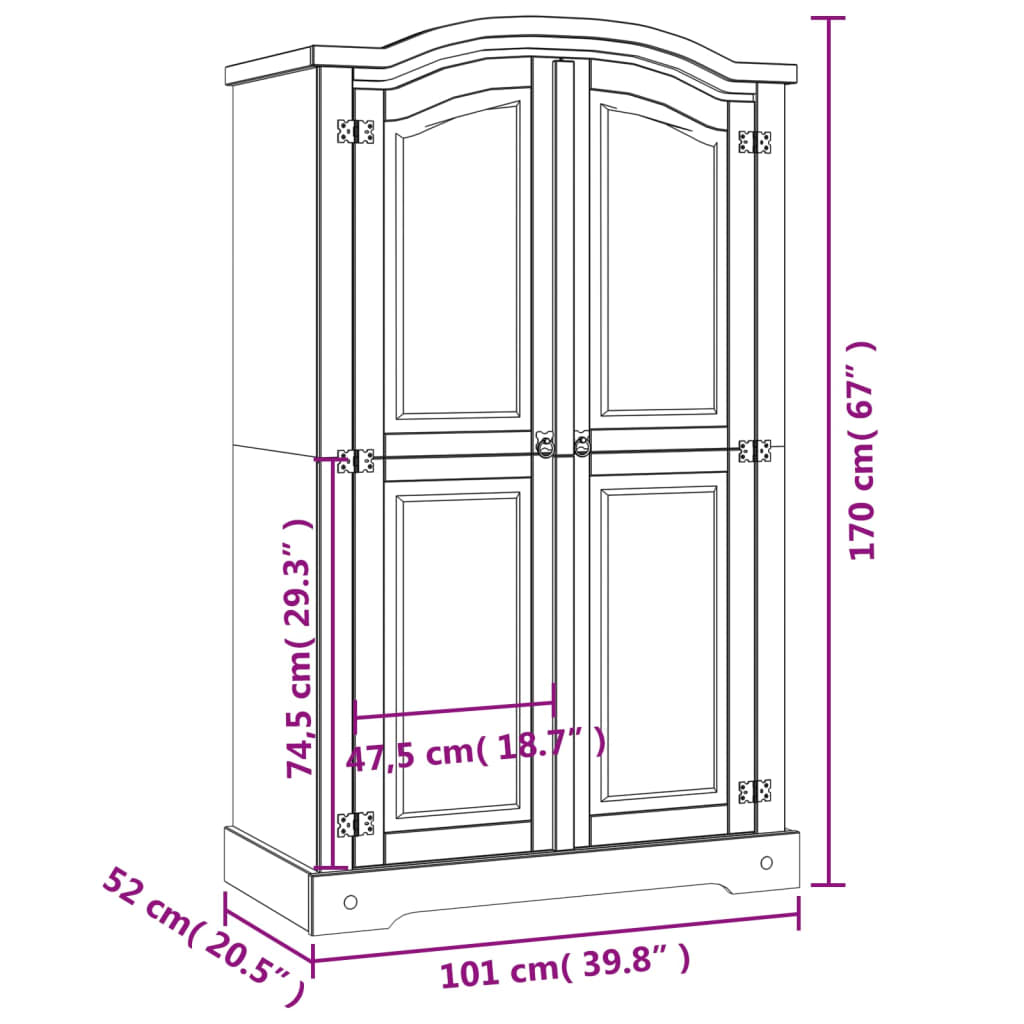 Acest sifonier din lemn de inalta calitate este o piesa de mobilier in stilul mexican Corona. Lemnul de pin cerat cu aplicatii metalice negre emana un sarm rustic mexican care va face ca sifonierul sa fie o completare grozava in dormitorul sau garderoba dvs. Acest sifonier frumos are partea de sus in stil cupola si 2 usi. Fabricat din lemn masiv de pin, este foarte solid si robust. De asemenea, are un spatiu mare pentru depozitare, cu un raft in partea de sus si o bara pentru umerase, oferind astfel suficient loc pentru organizarea hainelor. Este foarte usor de asamblat.Culoare: MaroMaterial: Lemn masiv de pinDimensiuni: 101 x 52 x 170 cm (L x l x i)Partea de sus in stil cupola si cu 2 usiCu 1 raft in partea de sus si 1 bara pentru umeraseIn stilul mobilierului mexican „Corona”Usor de asamblat AVERTISMENT: Pentru a preveni rasturnarea, acest produs trebuie utilizat impreuna cu dispozitivul de prindere pe perete inclus. Legal Documents:Mai multe detalii despre prevenirea rasturnarii mobilierului tau pot fi gasite aici