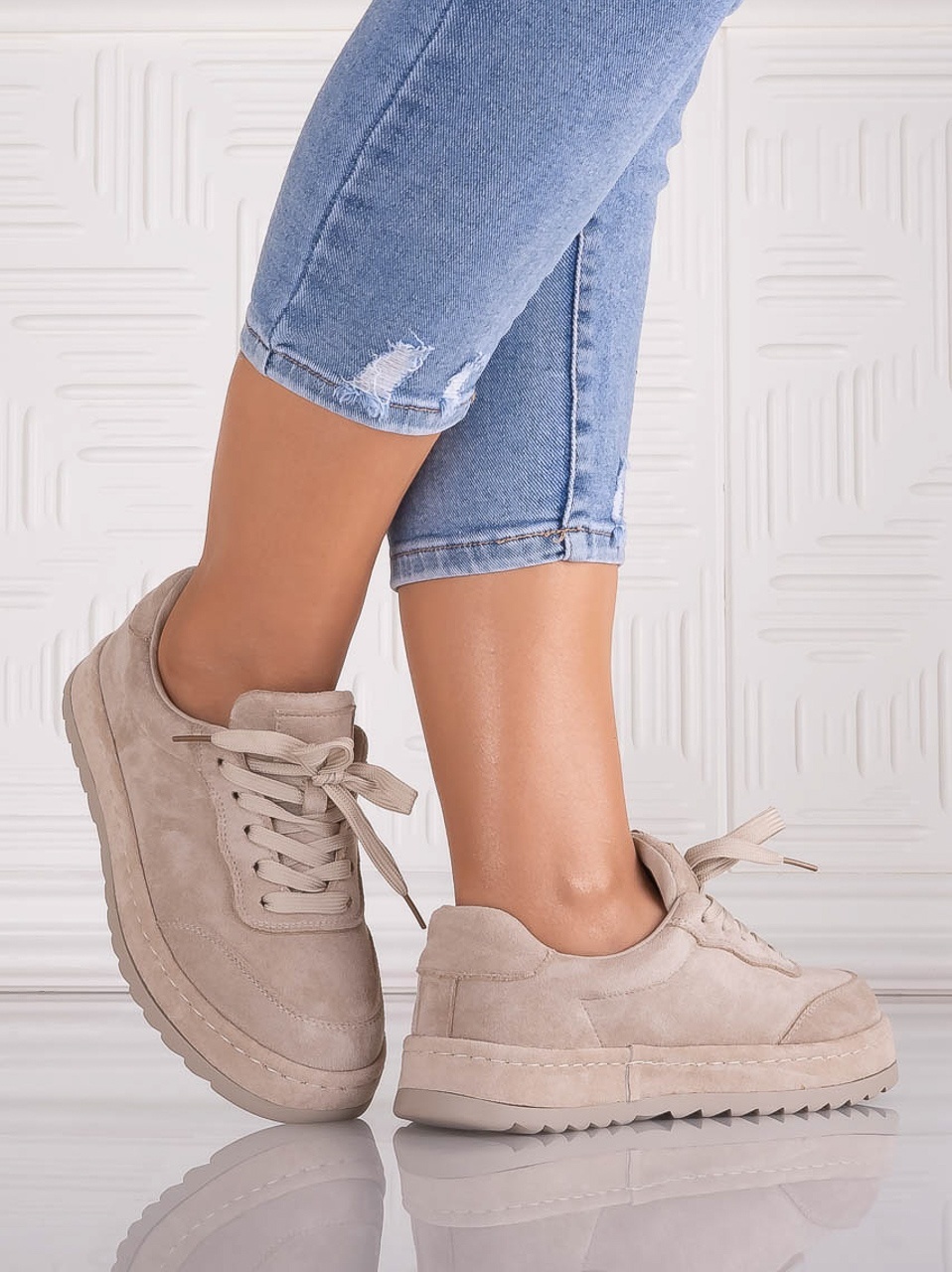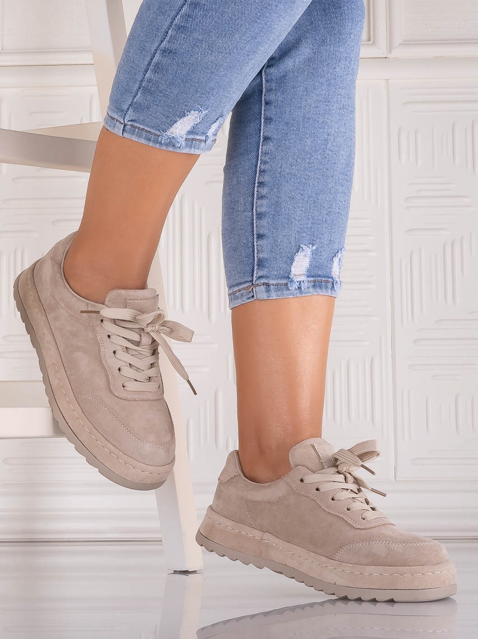 Sneakers dama Bej din Piele Ecologica Intoarsa Daliva