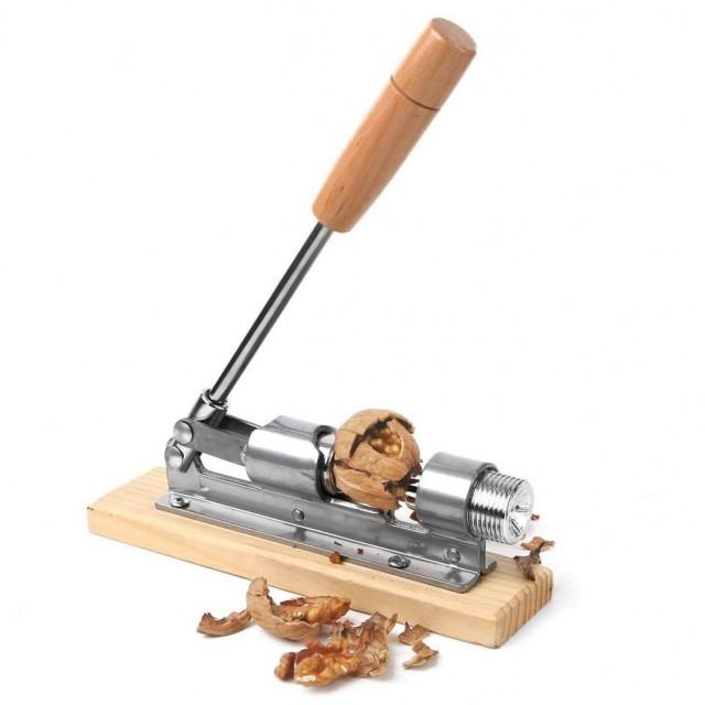 Spargator pentru nuci - Nut Cracker Spargator pentru nuci fabricat din otel cu baza din lemn, cu o structura si un design unic ce se adapteaza diferitelor marimi de nuci. Se pot sparge nuci romanesti, nuci de pecan, alune, nuci italiene, nuci de Brazilia, migdale, etc. Materiale: Otel si lemn. Dimensiuni: 21 x 6 x 7 cm. Se depoziteaza intr-un loc ferit de umezeala.
