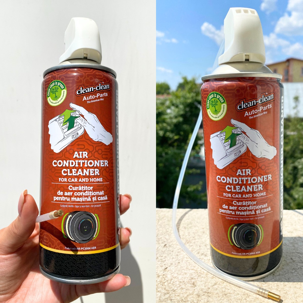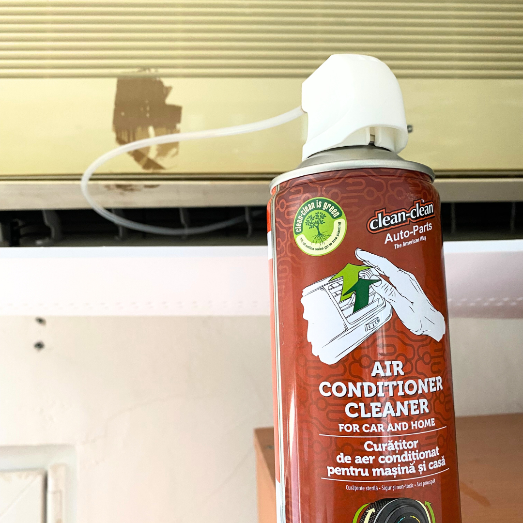 Spray spuma curatare instalatie climatizare Capacitate spray 450 ml, ideal pentru casa si masina Recipient sub presiune Volum: 450 ml spuma activa pentru curatare instalatie aer conditionat spray curatat si dezinfectat aer conditionat Contine: tensioactive anionice sub 5%, tensioactive neionice sub 5%, tensioactive cationice sub 5%, fosfati sub 5%, metasilicat disodic, apa demineralizata, propan-butan-izobutan (GPL) Neglijarea igienizarii poate determina alergii sau chiar afectiuni respiratorii precum rinite, viroze sau chiar pneumonii. Sistemul de climatizare este propice dezvoltarii de bacterii si ciuperci, fapt ce impune o curatare periodica. Intretinerea aparatelor de aer conditionat confera multiple beneficii: protejeaza sanatatea, reduce consumul de energie electrica, mentine performanta lor in parametri optimi. Avem in oferta un spray cu spuma activa pentru curatare instalatie aer conditionat de tip SPLIT, ventiloconvector, auto, usor de utilizat si foarte eficient. Distruge bacteriile, fungii, mucegaiurile si alte microorganisme. Utilizare la sistemele rezidentiale de aer conditionat de tip SPLIT: Opriti instalatia de climatizare si indepartati filtrele. Pulverizati uniform de la o distanta de 15-20 cm direct pe grila sistemului de racire. Porniti ventilatorul sistemului de racire la putere maxima timp de aproximativ 10 minute. Continutul acestui spray este suficient pentru 4 sisteme de tip SPLIT. Utilizare la sistemele rezidentiale de tip ventiloconvector: Indepartati capacele/filtrele aparatului. Pulverizati uniform in interiorul aparatului. Asteptati pana la evaporarea completa a produsului inainte de pornire. Continutul acestui spray este suficient pentru doua ventiloconvectoare. Utilizare la autovehicule: Opriti motorul si instalatia de aer conditionat. Indepartati filtrul de cabina (polen) sub care se gaseste evaporatorul. Pulverizati uniform aproximativ jumatate din continut direct pe evaporator. Atasati tubul prelungitor, introduceti-l la maximum, pe rand, in toate gurile de ventilatie si pulverizati restul de produs simultan cu retragerea lenta a acestuia. Asteptati 20 de minute ca produsul sa isi faca efectul, iar spuma sa dispara.