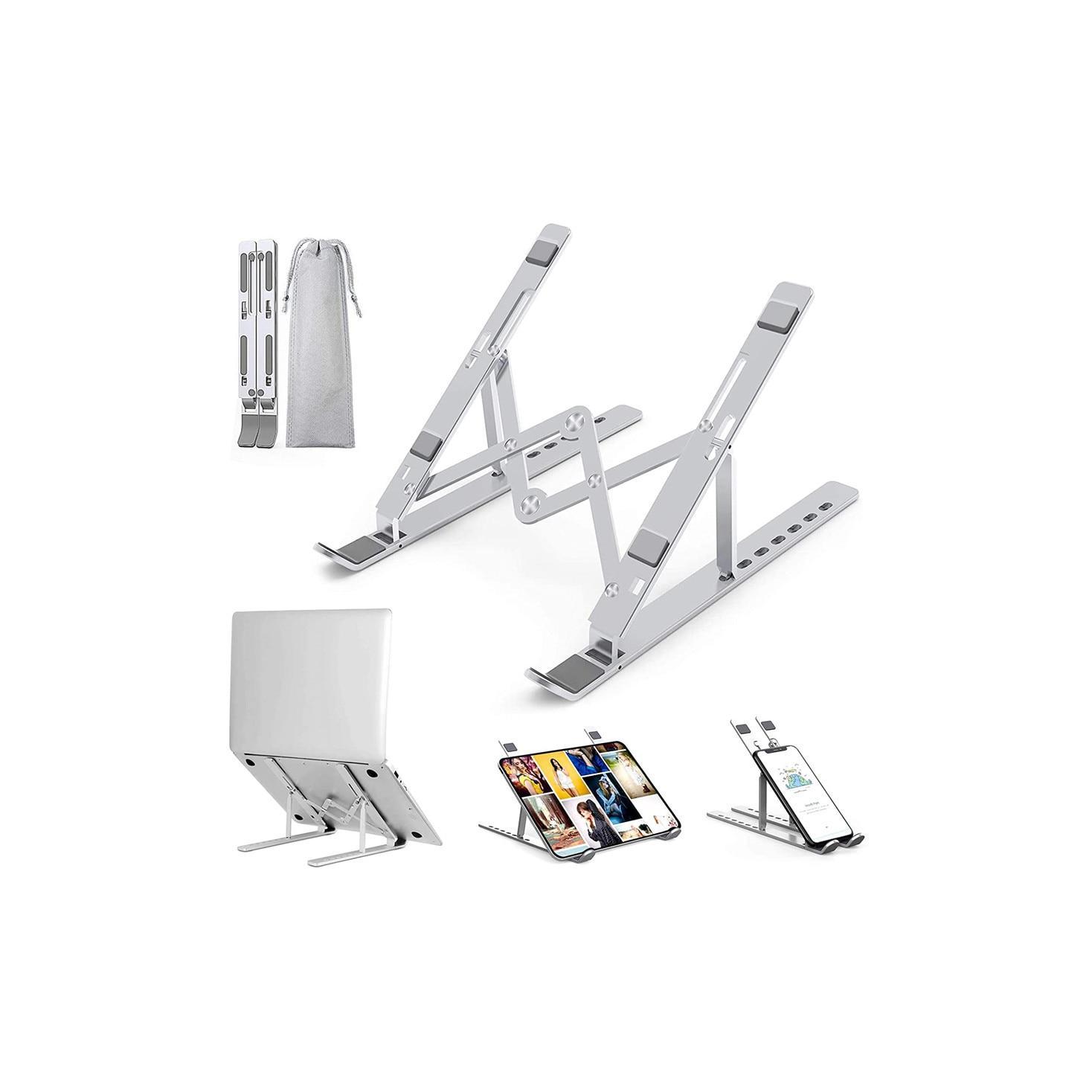 Stander multifunctional pentru laptop Silver Hold Aluminiu, portabil, design ergonomic Culori disponibile: negru si argintiu Structura stabila si robusta: Suportul nostru pliabil multifunctional este fabricat din aliaj de aluminiu de 6 mm de inalta calitate, iar designul dublu „M” este mai stabil. Usor si compact: vine cu structura din aliaj de aluminiu, doar 0,55 kilograme; il poti plia cu usurinta astfel incat sa incapa oriunde doresti in geanta. Reglarea inaltimii/ compatibilitate larga, usor de ridicat laptopul sau tableta avand 7 niveluri pentru a obtine cea mai confortabila pozitie de vizualizare si pentru a preveni astfel durerile de spate, gat si incheietura mainii de asemenea este ideal pentru a imbunatati fluxul de aer si ventilatia termica a dispozitivelor in timpul functionarii. Durabil si stabil: confectionat din aliaj de aluminiu si plastic ABS pentru a sustine pana la 30 de kilograme; iar materialul antiderapant mentine suportul stabil si protejeaza tableta sau laptopul de la zgarieturi. Usor de utilizat - Compatibilitate: este universal si se potriveste la toate tabletele si laptopurile de pana la 15,6”, chiar poate fi folosit si reviste, carti si multe altele. Stander-ul multifunctional pentru laptop Silver Hold vine intr-o husa gri cu siret , pentru a fi ferit de zgrieturi.