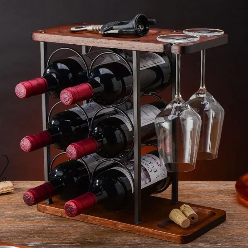 Suport 6 sticle de vin, 2 pahare Suport pentru sticle/pahare vin Lemn/Metal, 34x16x35 cm, Maro/Negru Suport simplu si creativ pentru sticle de vin in stil european si american si suport pentru pahar de vin rosu. Cadrul este din otel, vopsit cu pulbere neagra, rezistent la oxidare si rezistent la rugina. Baza groasa din lemn de sus si de jos, intregul suport pentru vinuri este stabil si frumos. Suportul pentru vin de blat are spatiu pentru pana la 6 sticle standard (diametrul mai mic de 3,46 inchi) din vinul tau preferat. In partea de sus se afla o mica tava practica, iar cateva lucruri simple (deschizatoare de sticle si dopuri) fac intregul suport de vin mai practic si mai bogat. Suport pentru pahare de vin 2 in 1. Acesta este un suport pentru vinuri de blat elegant si simplu. Designul ingenios de carlig din partea de sus poate tine 2 pahare de vin de diferite dimensiuni. Deschide vinul care iti place si scoate paharul de pe raft, incepe sa te bucuri de acest moment minunat. 4 suruburi blocheaza cele doua randuri de cadre de sprijin din fier forjat ferm din partea inferioara si apoi instaleaza scandura superioara pentru a o mentine stabila. Cheia hexagonala pentru insurubare este inclusa in pachet. Ca un decor minunat, acest suport pentru vinuri are un aspect frumos si atractiv. Suportul pentru vin de blat potrivit pentru bucataria de acasa, bar de vinuri, petrecere de familie, petrecere de vin, petrecere de Craciun sau ca un cadou pentru prieteni si familie. Tip produs Suport sticle si pahare Material Metal, Lemn 2 suporturi pentru pahar 6 suporturi pentru sticle Culoare Negru / Maro Inaltime 35 cm Lungime 34 cm Latime 16 cm Greutate 1.8 kg