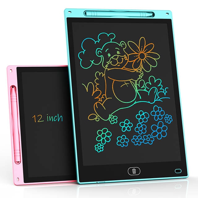 Tableta LCD pentru scris si desenat, 12 inch Scrie, deseneaza, creeaza simplu si usor folosind Digitab! Datorita ecranului LCD sensibil la atingere si creionului tip stylus usor de utilizat, tableta este perfecta atat pentru a scrie sau pentru a lua notite, cat si pentru a desena! Acest accesoriu revolutionar este ideal pentru orice activitate creativa sau recreativa, pentru scoala sau pentru birou, indiferent de varsta utilizatorului: Copiii pot sa scrie, sa deseneze, sa exerseze scrisul inca din perioada prescolara, sa foloseasca tableta pentru a invata mai usor sau pentru a nu se plictisi in masina, de exemplu. Adolescentii pot folosi tableta pentru a tine scorul de la jocurile cu prietenii. Adultii pot utiliza tableta pentru a face liste de cumparaturi, pentru a planifica meniul familiei, pentru a controla mai usor cheltuielile din buget sau itinerariul calatoriilor. Artisti pot schita desene sau doodle-uri in orice moment in care au inspiratie, deoarece tableta este foarte usor de purtat in geanta oriunde si oricand. Tableta este un device foarte util chiar si pentru birou, ideal pentru a lua notite in timpul meeting-urilor sau pentru a trasa rapid in fiecare dimineata lista sarcinilor de munca. Utilizarea tabletei este la fel de usoara precum scrisul cu stiloul pe hartie! Deoarece are un design compact, subtire si cu o greutate mica, tableta este usor de transportat oriunde – la scoala, la birou, la intalnirile de afaceri. In plus, aceasta are toate accesoriile incluse! Creionul de tip stylus dispune de un spatiu special in carcasa tabletei, astfel incat sa poata fi pus la loc dupa fiecare folosire si sa insoteasca mereu tableta. Scrie ce vrei si sterge cand vrei! Tot ceea ce scrii sau desenezi ramane afisat pe ecranul tabletei pana in momentul in care apesi pe butonul dedicat pentru stergere. Tableta functioneaza pe baza unei baterii incluse de tip CR2016 de 3V care asigura autonomie de pana la 2 ani. ATENTIE! Tableta nu are sistem de operare si nu ofera posibilitatea salvarii desenelor sau textului scris pe ea.