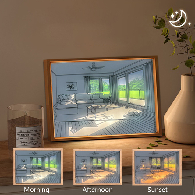 Tablou LED cu telecomanda, peisaje si umbre Tabloou cu peisaj si telecomanda inclusa va permite sa porniti/opriti si sa reglati efectele de iluminare in functie de preferintele dumneavoastra. Butonul de aprindere este usor de operat, iar sursa de alimentare este prin interfata USB. Puteti regla temperatura de culoare intre 3000-6000K pentru a se potrivi cu starea dumneavoastra de spirit. Dimensiune produs: 22 x 17 x 3 cm Material produs: lemn si acril Putere nominala: 3 W Model Tablou LED Light Village