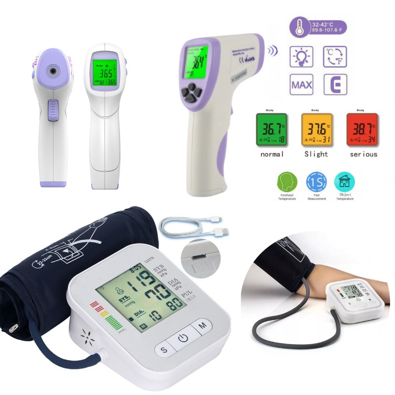 Tensiometru de brat + Termometru noncontact Tensiometru electronic de brat cu alimentare USB sau baterii - 99 memorari asezati-va cotul pe birou mansonul si inima trebuie sa fie la acelasi nivel tineti palma cu fata in sus si relaxati-va Monitorul tensiometrului poate stoca 99 de grupuri de memorare pentru 2 persoane. Dupa fiecare masurare a tensiunii, monitorul va salva automat datele respective. Cand capacitatea de memorare a aparatului a atins limita maxima, datele vechi vor fi inlocuite cu cele noi. numar de memorii: 99 de spatii de memorare display digital LCD metoda de masurare oscilometrica rata de masurare presiune: 40 mmHg-280 mmHg; puls: 40-199 / minute acuratete: presiune statica ± 3mmHg ; puls ± 5% alimentare prin port mini USB DC 5V sau 4 baterii AAA diamtru manson 22-32 cm dimensiuni: 115 mm x 96 mm x 59 mm Termometrul frontal profesional cu infrarosu masoara temperatura artelei frontale a corpului uman, fiind cadoul ideal pentru orice familie. Acesta masoara temperatura corpului frontal, non-contact, de la distanta cuprinsa intre 5-15 cm. Un cadou util pentru orice membru al familiei, in special pentru copii care nu au rabdare sa li se masoare temperatura cu termometrul clasic. Termometrul frontal cu infrarosu poate fi utilizat acasa, in farmacii, clinici, gradinite etc. Acesta masoara temperatura in zona frontala, fara a atinge corpul, in doar 0.5 secunde. termometru noncontact CK-T1501 acuratete: ± 0.3 C ° (0.54 F °) dimensiune de masurare: 5 - 15 cm inchidere automata dupa 7 secunde umiditate relativa ≤ 85% greutate: 130 grame dimensiuni: 15.5 × 4.5 × 10 cm nu necesita contact pe piele masoare temperatura in mai putin de 1 secunda memoreaza pana la 32 de valori posibilitate de setare a unitatii de masura: grade Celsius sau Fahrenheit display LCD masoara temperaturi de pana la 100 grade Celsius functioneaza cu 2 baterii AAA 1.5V (neincluse)