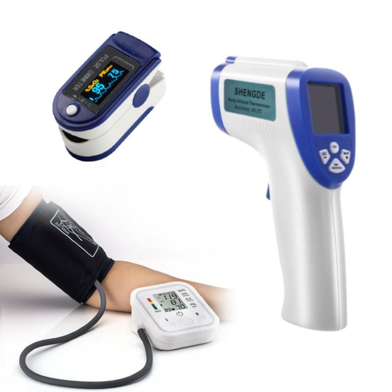 Tensiometru de brat + Termometru noncontact + Pulsoximetru Tensiometru electronic de brat cu alimentare USB sau baterii - 99 memorari asezati-va cotul pe birou mansonul si inima trebuie sa fie la acelasi nivel tineti palma cu fata in sus si relaxati-va Monitorul tensiometrului poate stoca 99 de grupuri de memorare pentru 2 persoane. Dupa fiecare masurare a tensiunii, monitorul va salva automat datele respective. Cand capacitatea de memorare a aparatului a atins limita maxima, datele vechi vor fi inlocuite cu cele noi. numar de memorii: 99 de spatii de memorare display digital LCD metoda de masurare oscilometrica rata de masurare presiune: 40 mmHg-280 mmHg; puls: 40-199 / minute acuratete: presiune statica ± 3mmHg ; puls ± 5% alimentare prin port mini USB DC 5V sau 4 baterii AAA diamtru manson 22-32 cm dimensiuni: 115 mm x 96 mm x 59 mm Termometrul frontal profesional cu infrarosu masoara temperatura artelei frontale a corpului uman, fiind cadoul ideal pentru orice familie. Acesta masoara temperatura corpului frontal, non-contact, de la distanta cuprinsa intre 5-15 cm. Un cadou util pentru orice membru al familiei, in special pentru copii care nu au rabdare sa li se masoare temperatura cu termometrul clasic. Termometrul frontal cu infrarosu poate fi utilizat acasa, in farmacii, clinici, gradinite etc. Acesta masoara temperatura in zona frontala, fara a atinge corpul, in doar 0.5 secunde. termometru noncontact CK-T1501 acuratete: ± 0.3 C ° (0.54 F °) dimensiune de masurare: 5 - 15 cm inchidere automata dupa 7 secunde umiditate relativa ≤ 85% greutate: 130 grame dimensiuni: 15.5 × 4.5 × 10 cm nu necesita contact pe piele masoare temperatura in mai putin de 1 secunda memoreaza pana la 32 de valori posibilitate de setare a unitatii de masura: grade Celsius sau Fahrenheit display LCD masoara temperaturi de pana la 100 grade Celsius functioneaza cu 2 baterii AAA 1.5V (neincluse) Aparat de masurare puls - Oximetru un singur buton de operare (on/off) dimensiuni mici, greutate mica, usor de carat si depozitat consum mic functioneaza cu 2 baterii AA (neincluse) indicator pentru baterie slaba oprire automata atunci cand nu e utilizat deloc timp de 8 secunde display masurare cu ajutorul degetului curent masurare: mazim 30mA temperatura de lucru: 5-40 grade Celsius limite masurare oximetru: 35-100% limite masurare puls: 30-250 BPM pulsul este masurat in BPM oximetru masoara in % Aparatul are doua functii: BPM - masoara bataile pe minut ale inimii SpO2 - masoara saturatia de oxigen