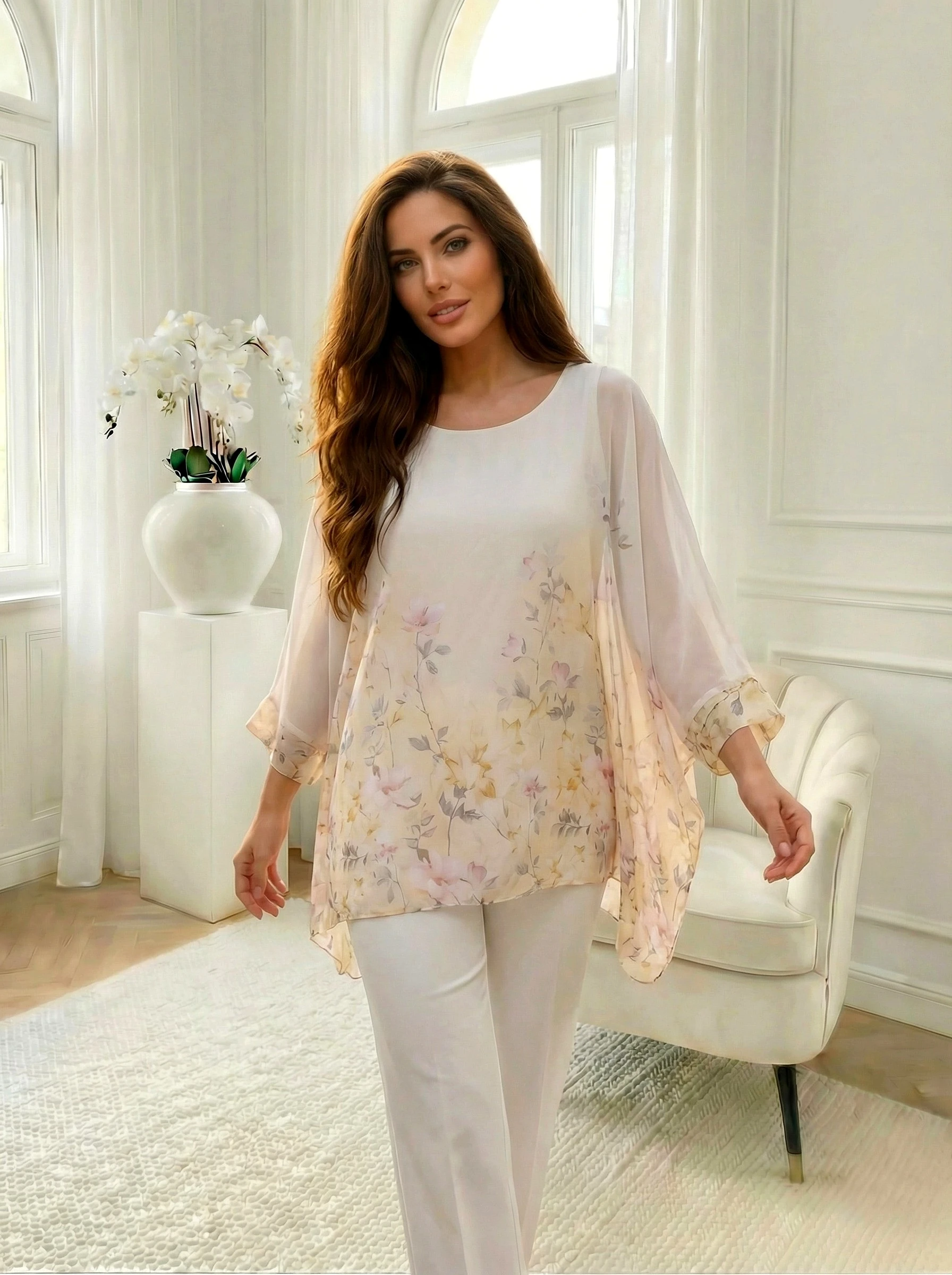 Tunica galbena cu imprimeu floral si maneci liliac, este o piesa diafana care aduce eleganta si lejeritate oricarei tinute de zi. Realizata dintr-un material delicat, aceasta prezinta captuseala pe fata si pe spate pentru un plus de confort si discretie,