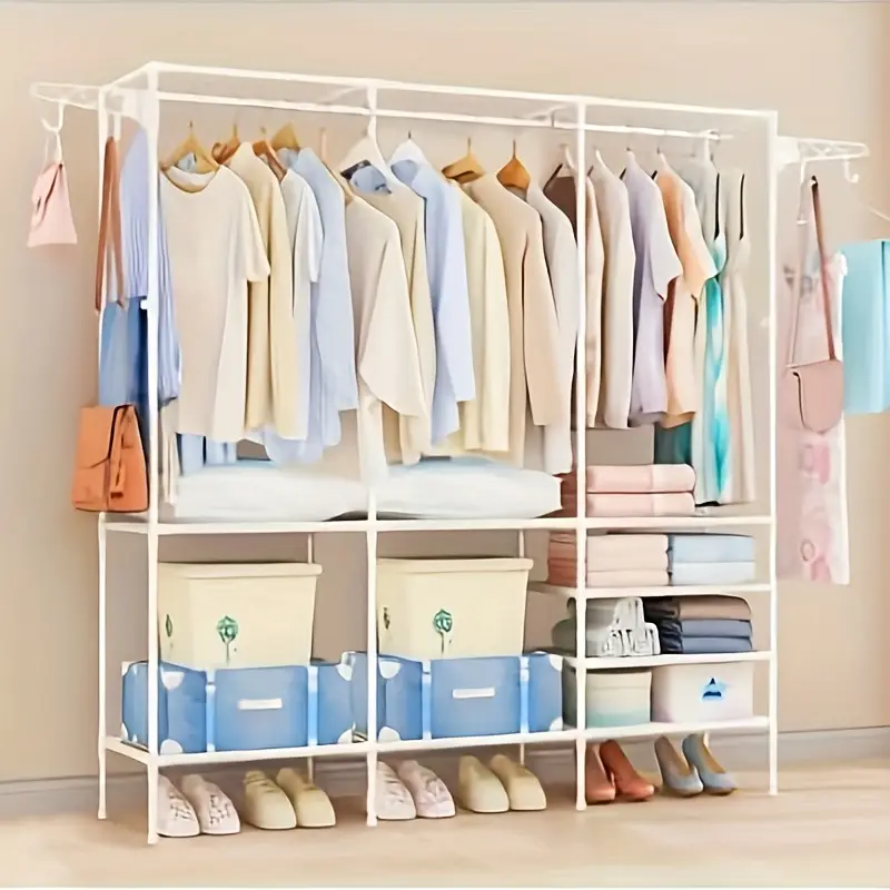 Umeras dublu cu rafturi Dimensiune 173 x 36 x 160 cm Umerasele sunt foarte practice deoarece ofera suficient spatiu pentru depozitarea hainelor si a altor articole textile. In plus, faciliteaza organizarea si mentinerea ordinii. Economiseste spatiu – cuierul este o solutie perfecta pentru cei care au spatiu limitat sau o piesa de mobilier temporara acasa. Umerasul este usor si adaptabil in diverse incaperi. Are 6 rafturi, o bara de agatat si 8 umerase. Unul dintre marile avantaje ale cuierului este mobilitatea acestuia. Este usor si poate fi mutat cu usurinta dintr-un loc in altul, ceea ce este util atunci cand doriti sa schimbati aspectul camerei sau sa va mutati intr-un nou loc de resedinta. Usurinta de asamblare - elementele individuale ale cuierului sunt foarte usor de asamblat si dezasamblat. Nu necesita instrumente sau abilitati complicate, ceea ce inseamna ca pot fi instalate rapid si usor in orice camera. Doar conectati conectorii cu tuburile si gata. culoare: alb material: metal + plastic numar rafturi: 8 numar umerase laterale 8 sarcina maxima: distribuit uniform 80 kg dimensiuni: 173 x 36 x 160 cm greutate: 4,5 kg