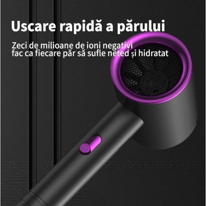 Uscator par, 3 trepte de caldura, ioni negativi Protectie la temperatura, uscare rapida, Negru/Roz Uscatorul de par este potrivit atat pentru uz casnic, cat si pentru cel profesional. Puterea mare va va permite sa va uscati bine si rapid parul, sa adaugati volum buclelor si sa creati o coafura sic. Datorita combinatiei dintre debitul de aer si temperatura de incalzire, uscatorul de par nu supraincalzeste parul. Caracteristici: Putere: 1200 W Frecventa: 50Hz Viteza: 10000 RPM Dimensiuni: 25 x 25cm