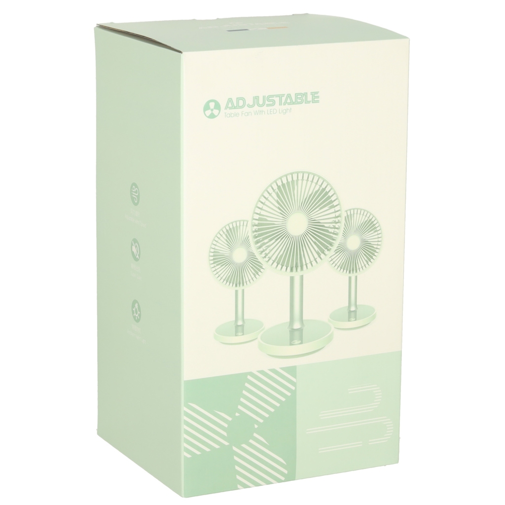 Ventilatorul modern de birou combina stilul, functionalitatea si comoditatea. Are patru moduri de operare, permitandu-ti sa ajustezi fluxul de aer in functie de nevoile tale. In plus, are o functie de iluminare a bazei, care va fi extrem de utila pe timp de noapte. Inaltimea ventilatorului (30-38 cm) poate fi ajustata dupa preferintele tale. Finisajul sau elegant alb se va potrivi perfect in orice interior, iar dimensiunea sa compacta il face usor de transportat. Este o alegere excelen
