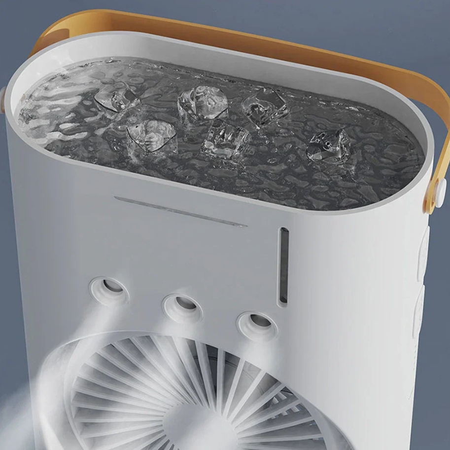 Ventilator portabil dublu Umidificare prin pulverizare si telecomanda Racire eficienta Functionare practica Multifunctional Portabil Multifunctional - Pe langa rolul de ventilator de racire, acest aparat portabil pentru uz casnic functioneaza si ca umidificator, oferind o prospetime suplimentara si o racire mai intensa pentru o atmosfera placuta. Linistit si relaxant - Functionand silentios, asemenea vantului natural, acest ventilator cu pulverizare este ideal pentru utilizare in dormitoare, birouri sau camine, asigurand un mediu linistit fara a perturba somnul. Specificatii: Material: ABS 37 cm x 9 cm x 16.5 cm Lungime x Latime x Inaltime Capacitate baterie: 3000 mAh Putere: 36 W