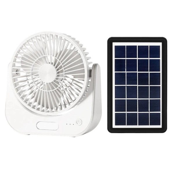 Ventilator Solar Portabil 6 inch cu lumina LED Este ideal in camping sau situatii de urgenta Energie verde, mereu la indemana Panoul solar integrat asigura incarcarea ecologica si gratuita oriunde te afli, iar bateria interna poate fi reincarcata si prin USB. Iluminare eficienta cu LED Cele trei LED-uri ofera lumina intensa si consum redus de energie, perfecte pentru cort, cabana sau in gospodarie. Ventilator Solar Portabil cu lumina LED: 3 Trepte de Viteza Conectivitate USB Culori: Alb sau Roz
