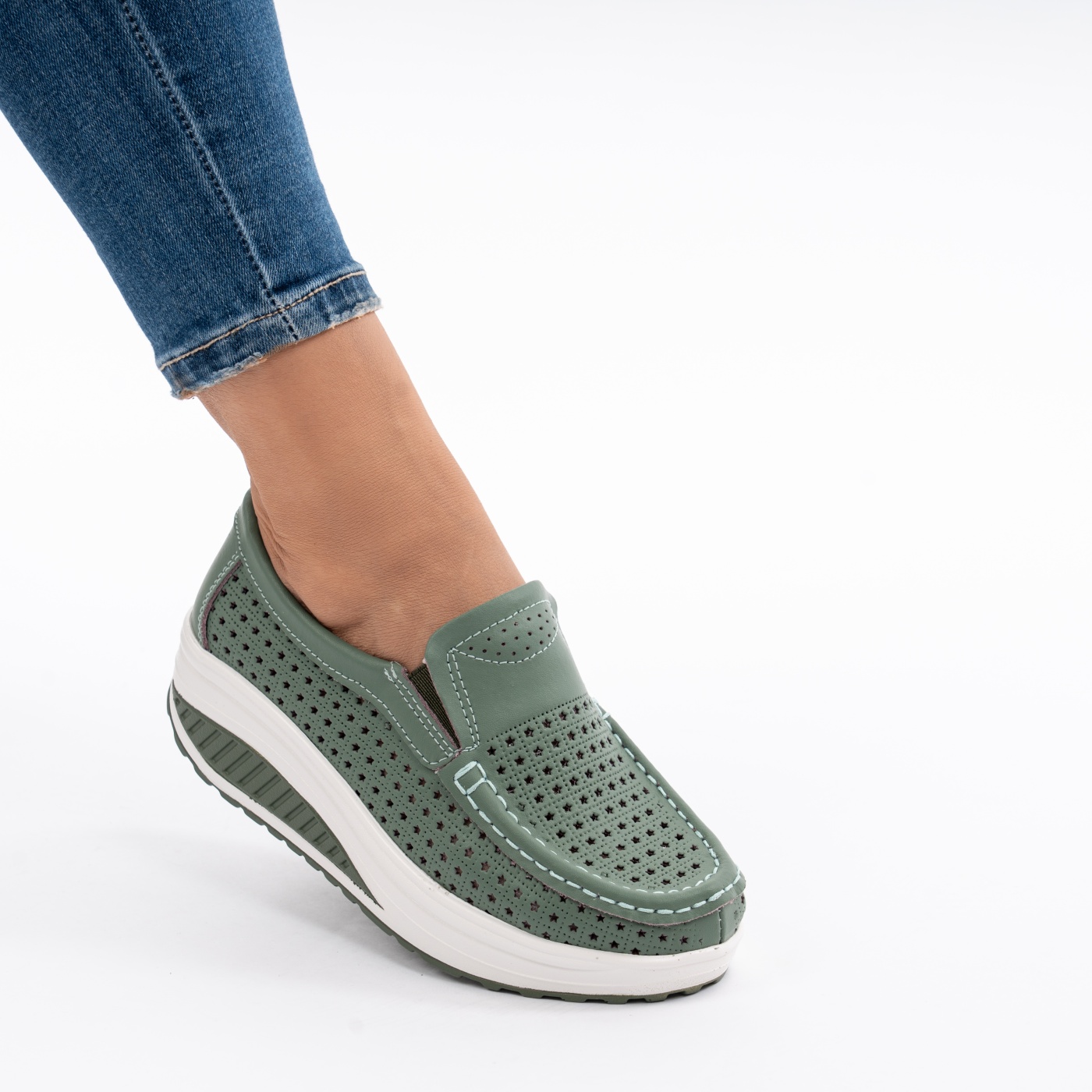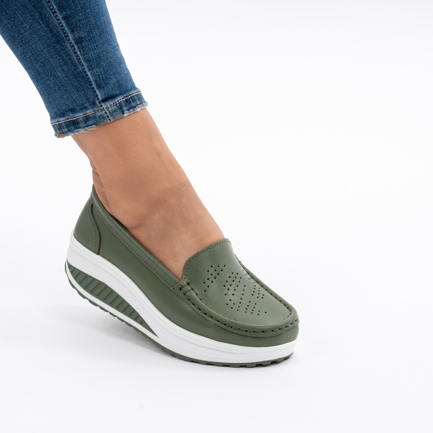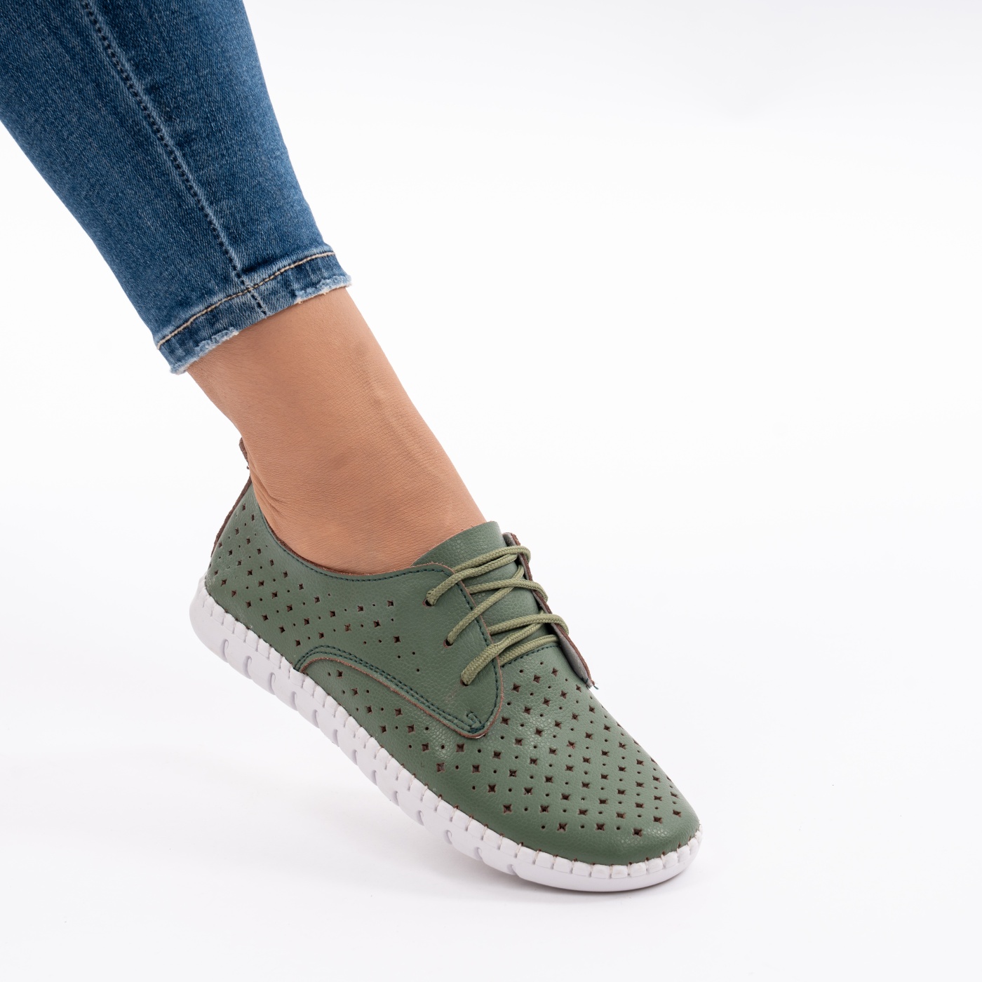 Balerini Piele Naturala Perforati Verde AN1128-8