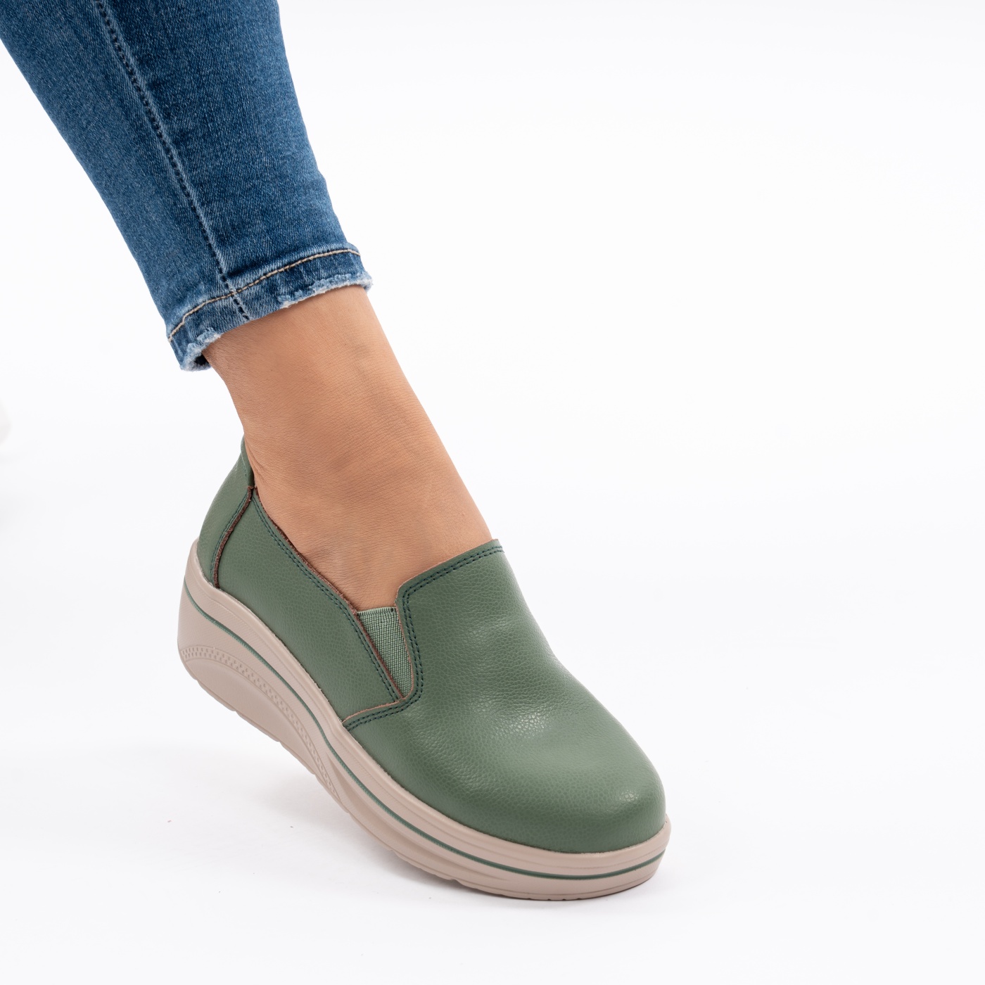 Pantofi Piele Naturala Talpa Comoda Verde AN-29-1