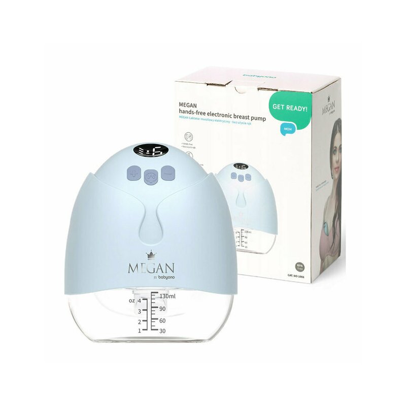 Pompa electrica de san, BabyOno, Megan, Handsfree, 2 moduri de utilizari, USB-C, Putere de aspirare in 9 trepte, Baterie 1100 mAh cca 2 h autonomie, Accesorii incluse, Transparent/ Albastru