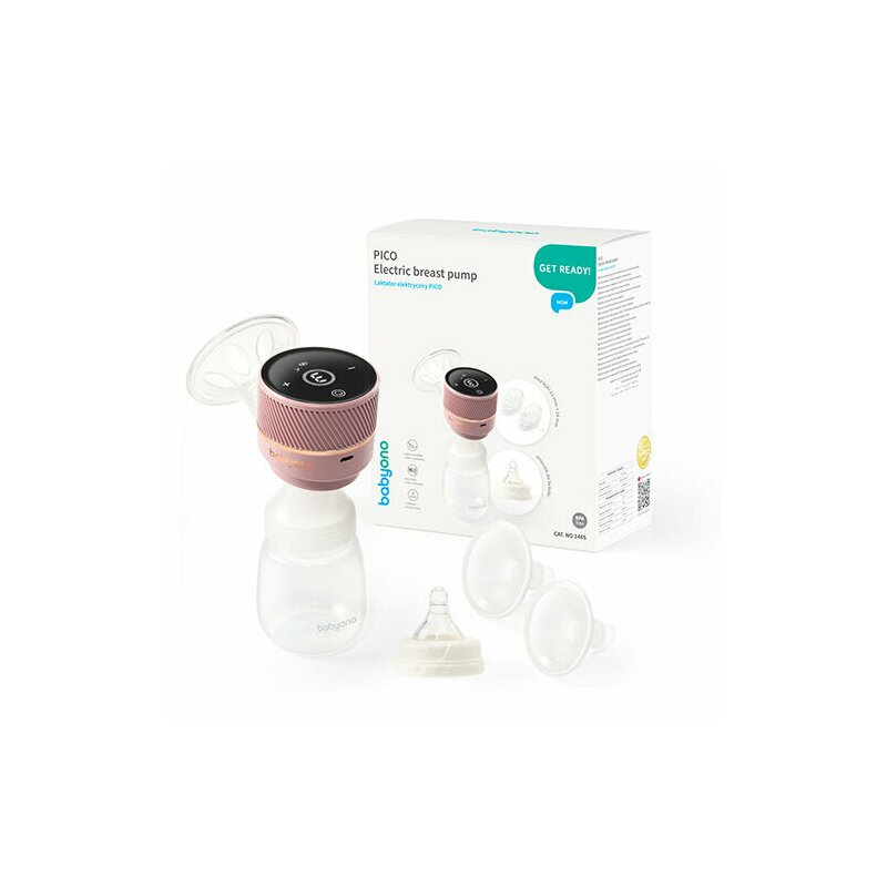 Pompa electrica de san, BabyOno, Pico, Handsfree, USB-C, Oprire automata, Autonomie completa pana la 2 h, Husa pentru depozitare, Biberon 280 ml inclus, Ecran tactil, Transparent/Roz