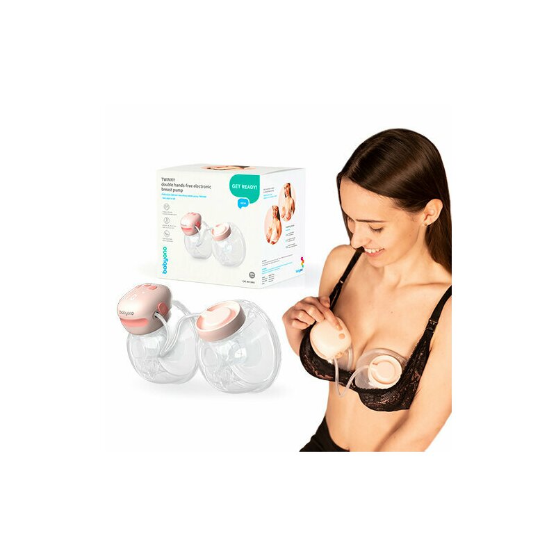 Pompa electrica de san, BabyOno, Twinny, Dubla, Handsfree, 3 moduri de utilizare, USB-C, Oprire automata, Autonomie completa pana la 2 h, Geanta pentru depozitare, Transparent/Roz