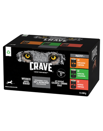 CRAVE Dog Dose Mixed Multipack Hrana umeda pentru caini adulti, mix de carne 6x400 g