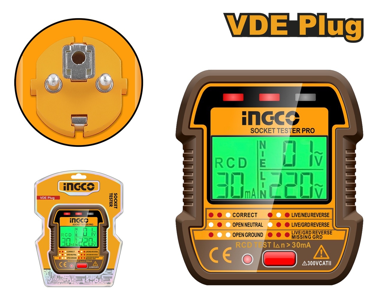 Tester Priza HESST30011 – tester electric priza cu afisaj LCD si functie test RCD 90-250V