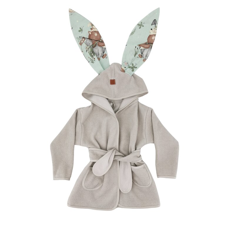 Halat de baie, MimiNu, Cu urechi, 2 - 5 ani, Moale, Cu buzunare, Cu cordon, Din bumbac si thermo fleece, Materiale certificate Oeko Tex Standard 100, Design, Lets Go Natural