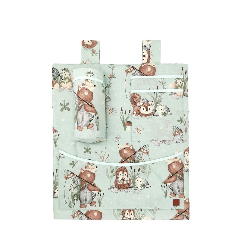 Organizator pentru patut leagan, MimiNu, Din bumbac certificat Oeko Tex Standard 100, 3 compartimente, 53x46 cm, Design, Lets Go Natural
