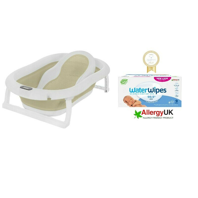 Set cadita bebe, Primabobo, Genua Premium, cu termometru, dop si suport anatomic, Bej + servetele umede Water Wipes, biodegradabile, fara alcool, plastic si parfum, 540 bucati, pe baza de apa