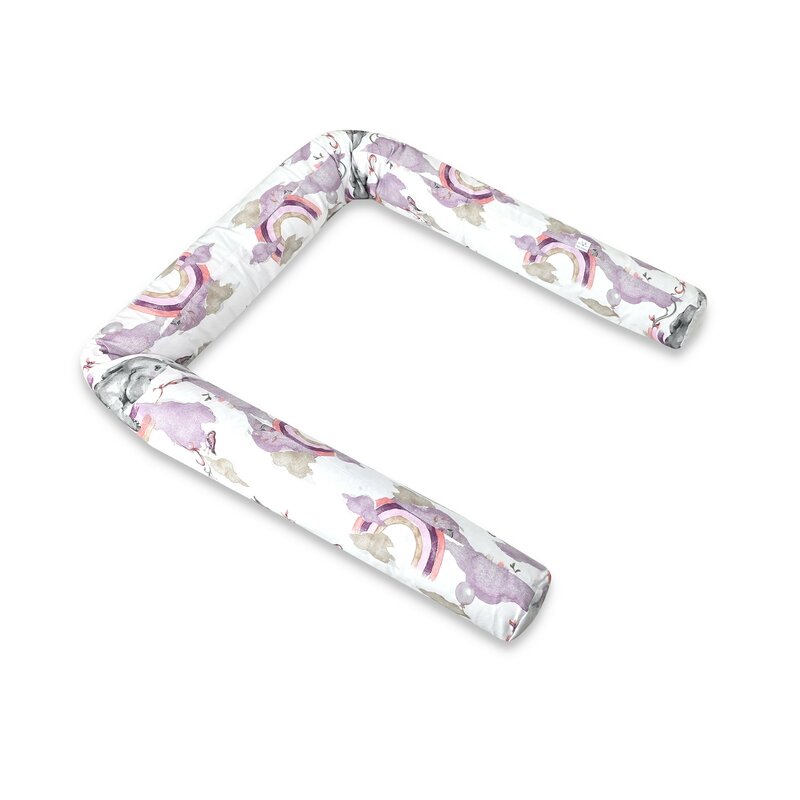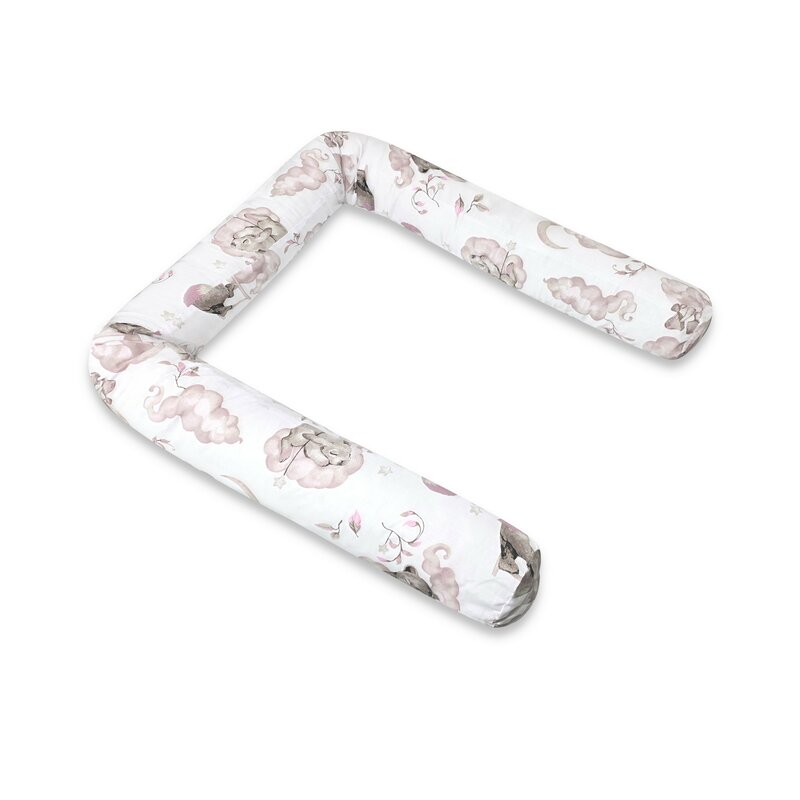 Aparatoare pentru patut, Qmini, Tip rulou, Cu husa detasabila, Lungime 180 cm, Din bumbac certificat Oeko Tex Standard 100, Elephants on Rainbow Pink