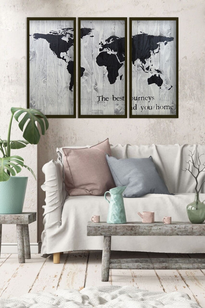 Set 3 tablouri decorative, drprc9026, Cadru: 100% LEMN (grosime: 3 cm), Multicolor