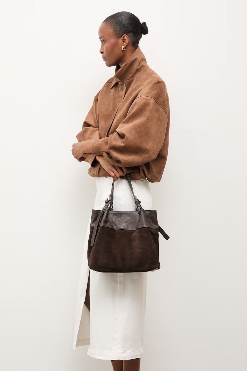 A.P.C. geanta de mana din piele intoarsa LE DRUMMER