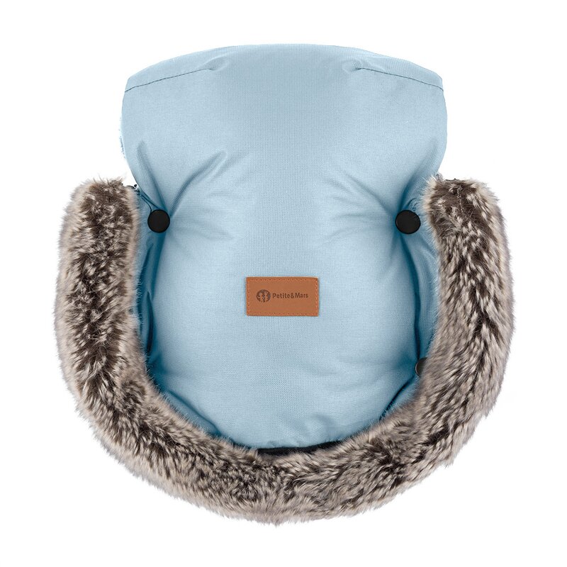 Manusi calduroase pentru carucior, Petite&Mars, Furry, Cu blanita detasabila, Pentru vremea rece, Potrivite pentru orice carucior, Impermeabile, Inchidere prin capse, Sky Whisper
