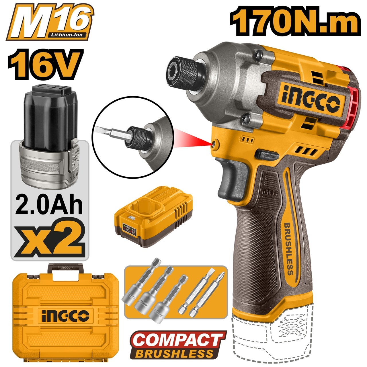 Bormasina cu Impact 16V 170Nm Brushless 0-2700 rpm 0-3500 bpm Prindere Hex 6.35mm LED CIRLI16178 cu 2 Acumulatori 2Ah si Incarcator