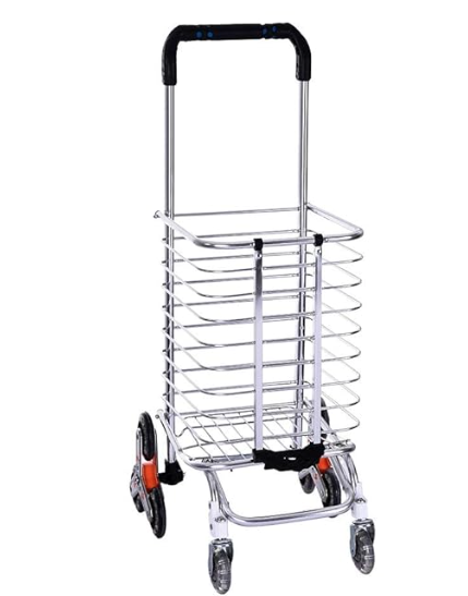 Cos de cumparaturi pliabil cu 4 roti argintiu