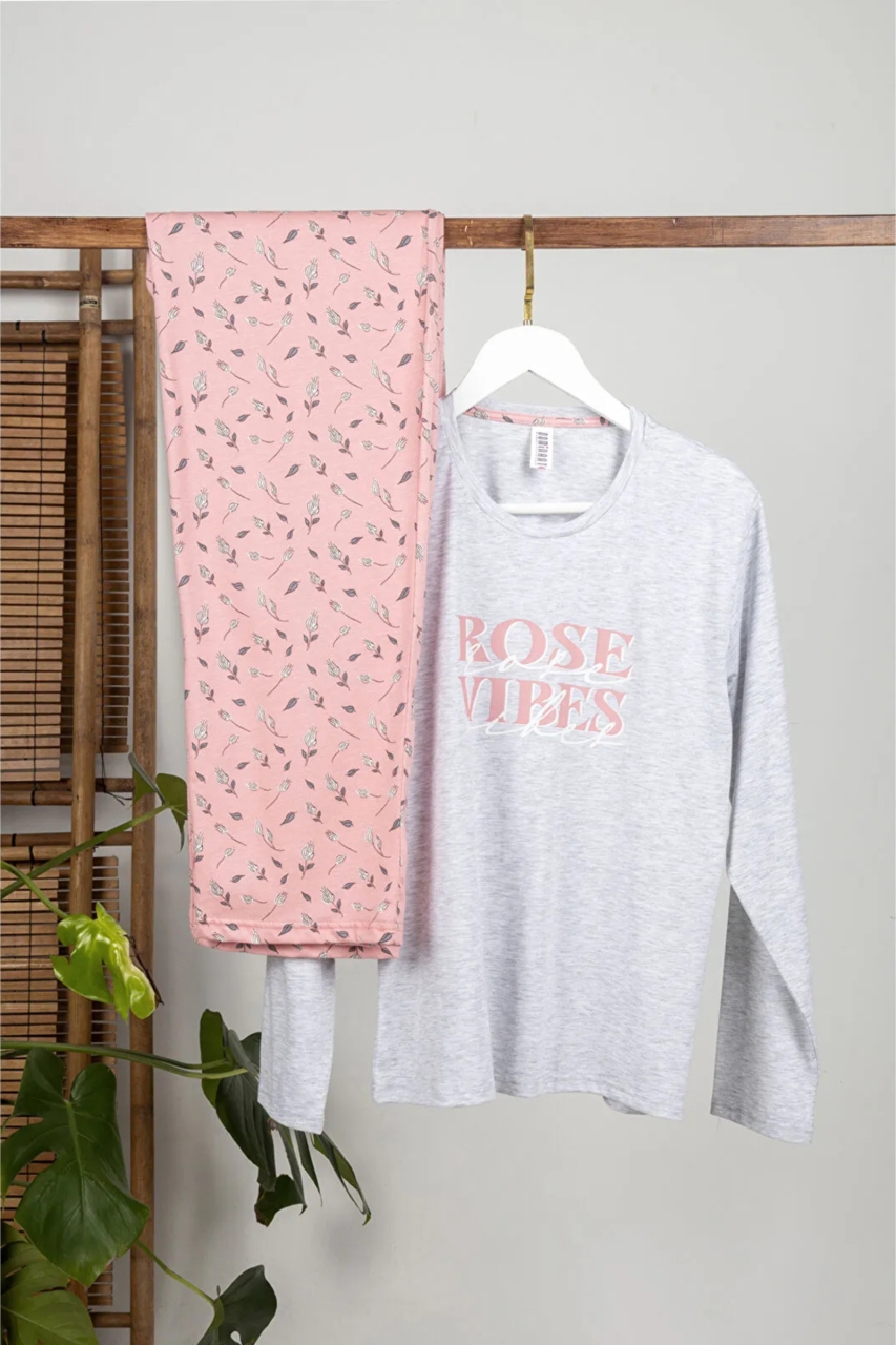 Pijama dama Everyday, din bumbac, doua piese, 14900, Gri/Roz