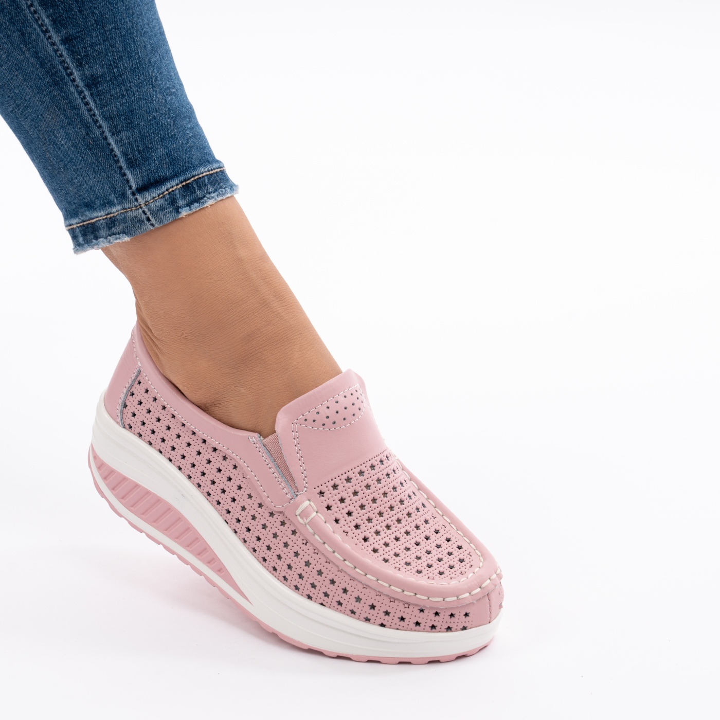 Pantofi Casual Piele Naturala Alb&Roz ST05