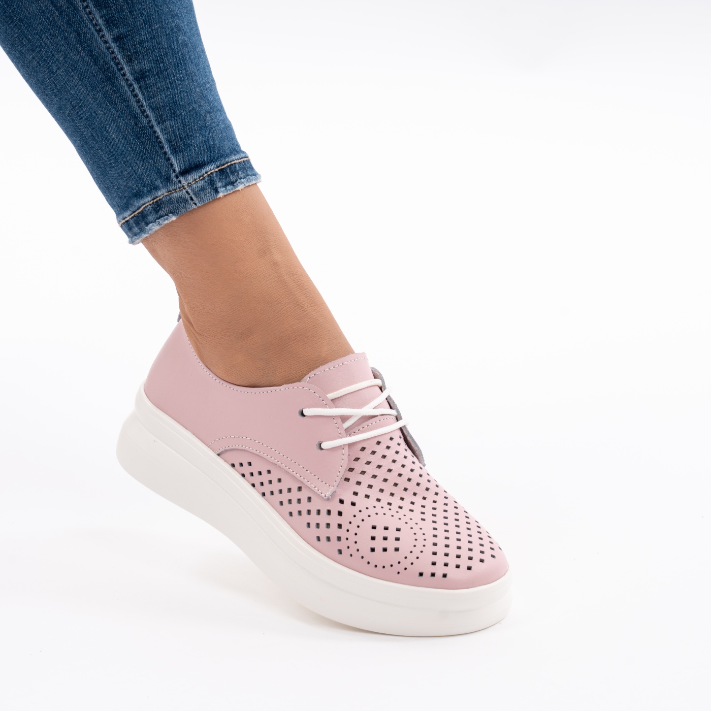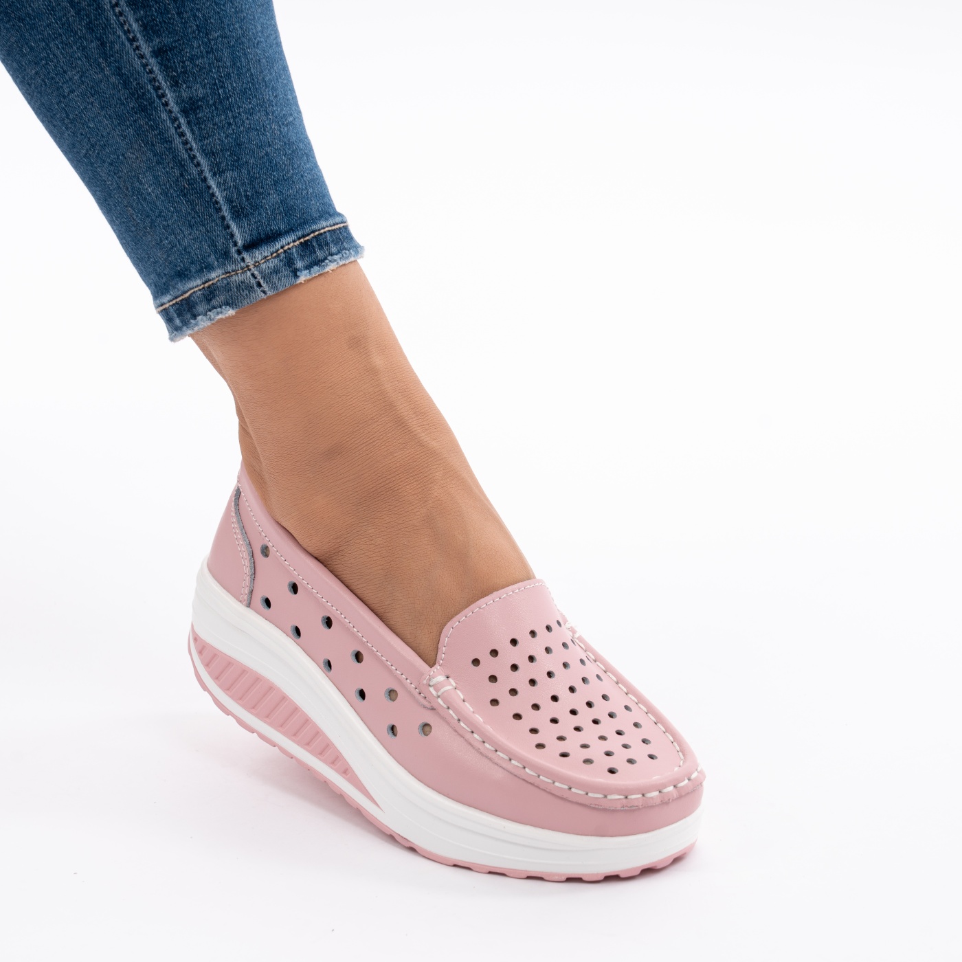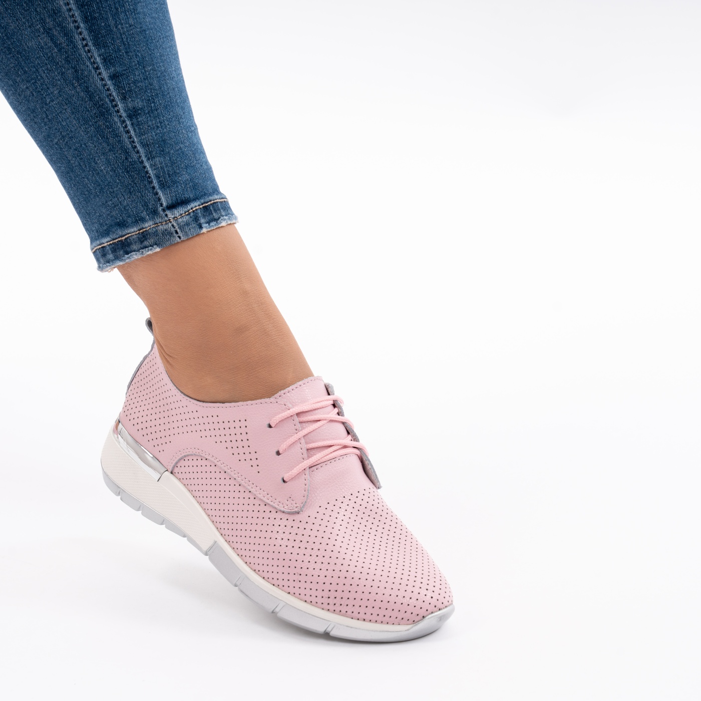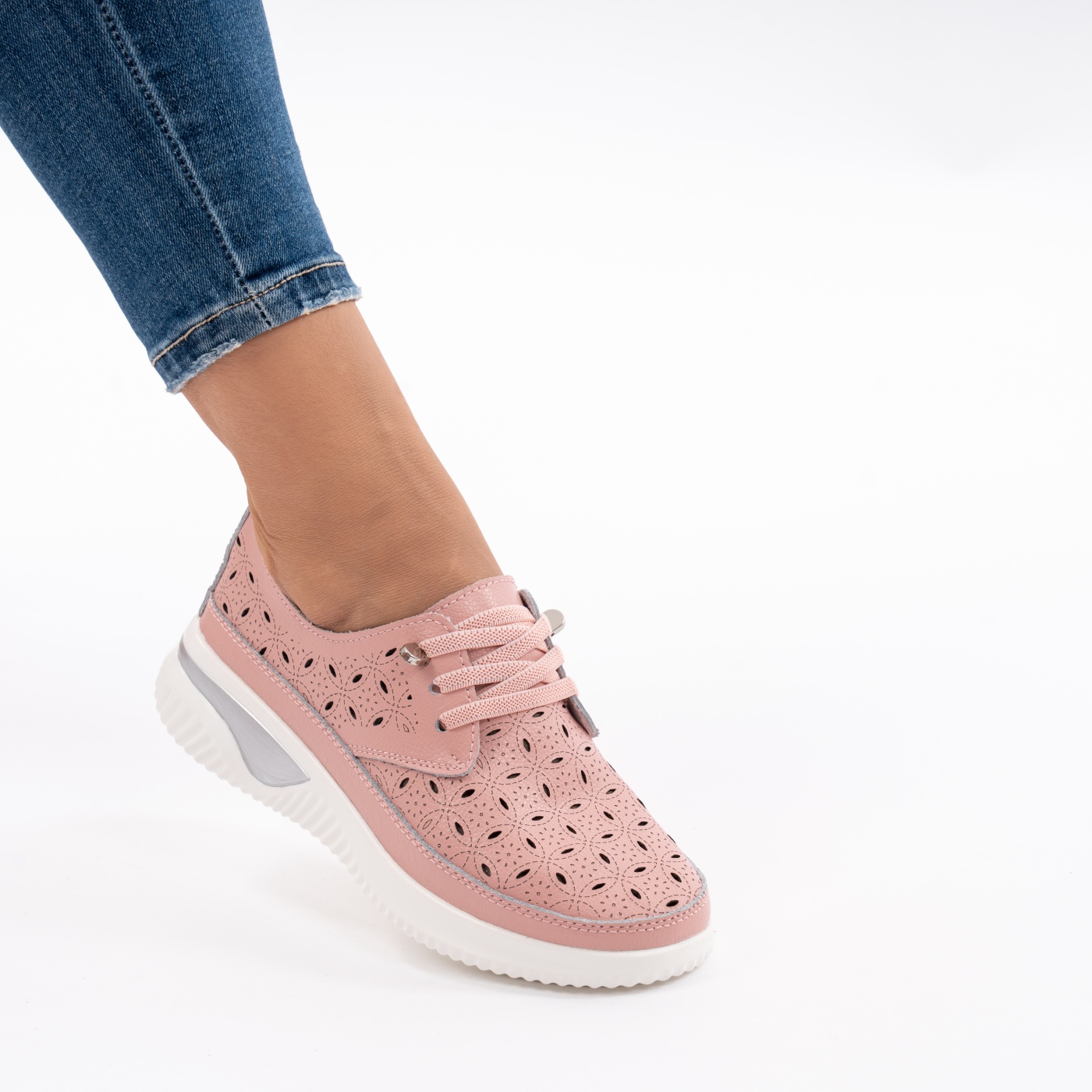 Pantofi Casual Din Piele Naturala Roz A568