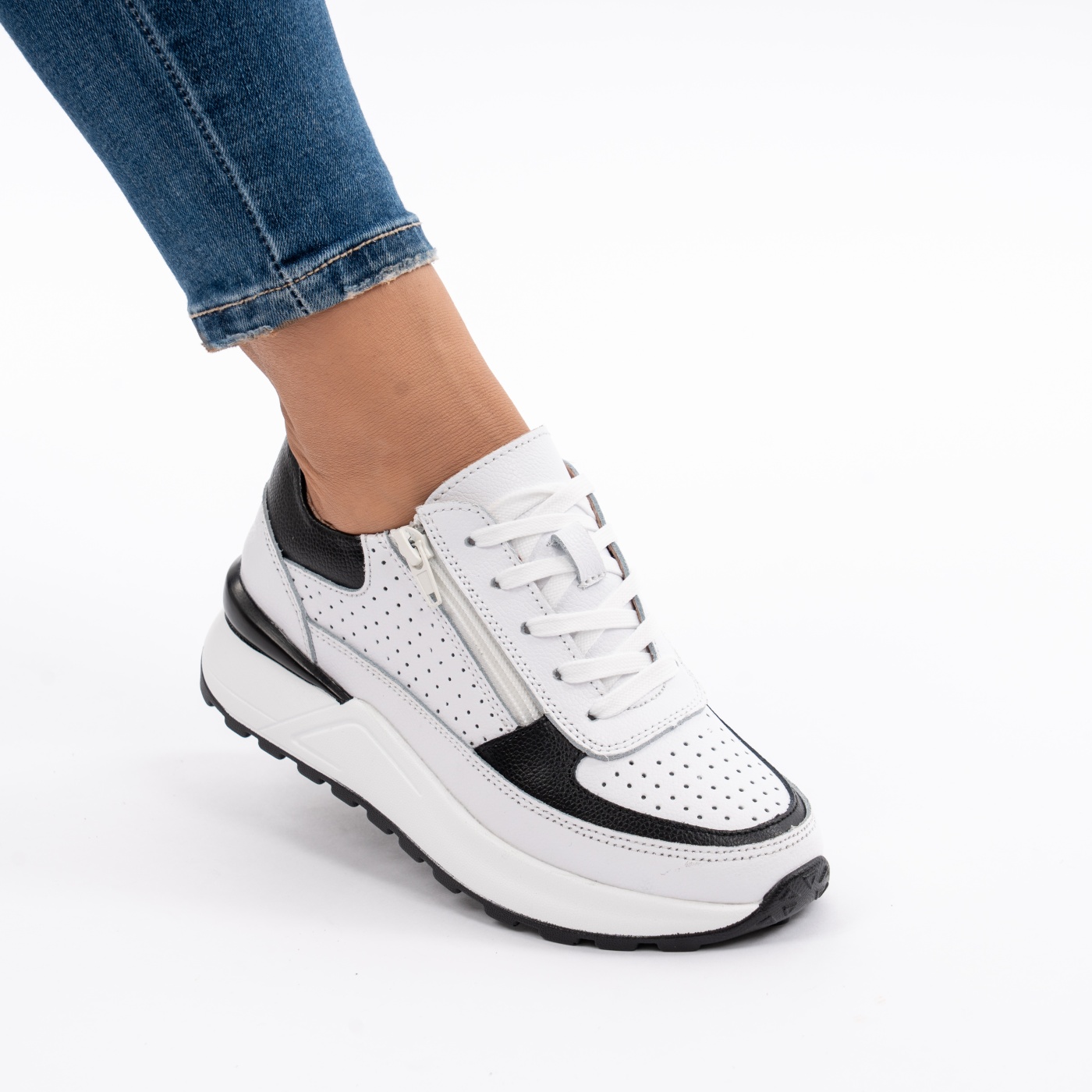 Pantofi Sport Piele Naturala Alb&Negru H18