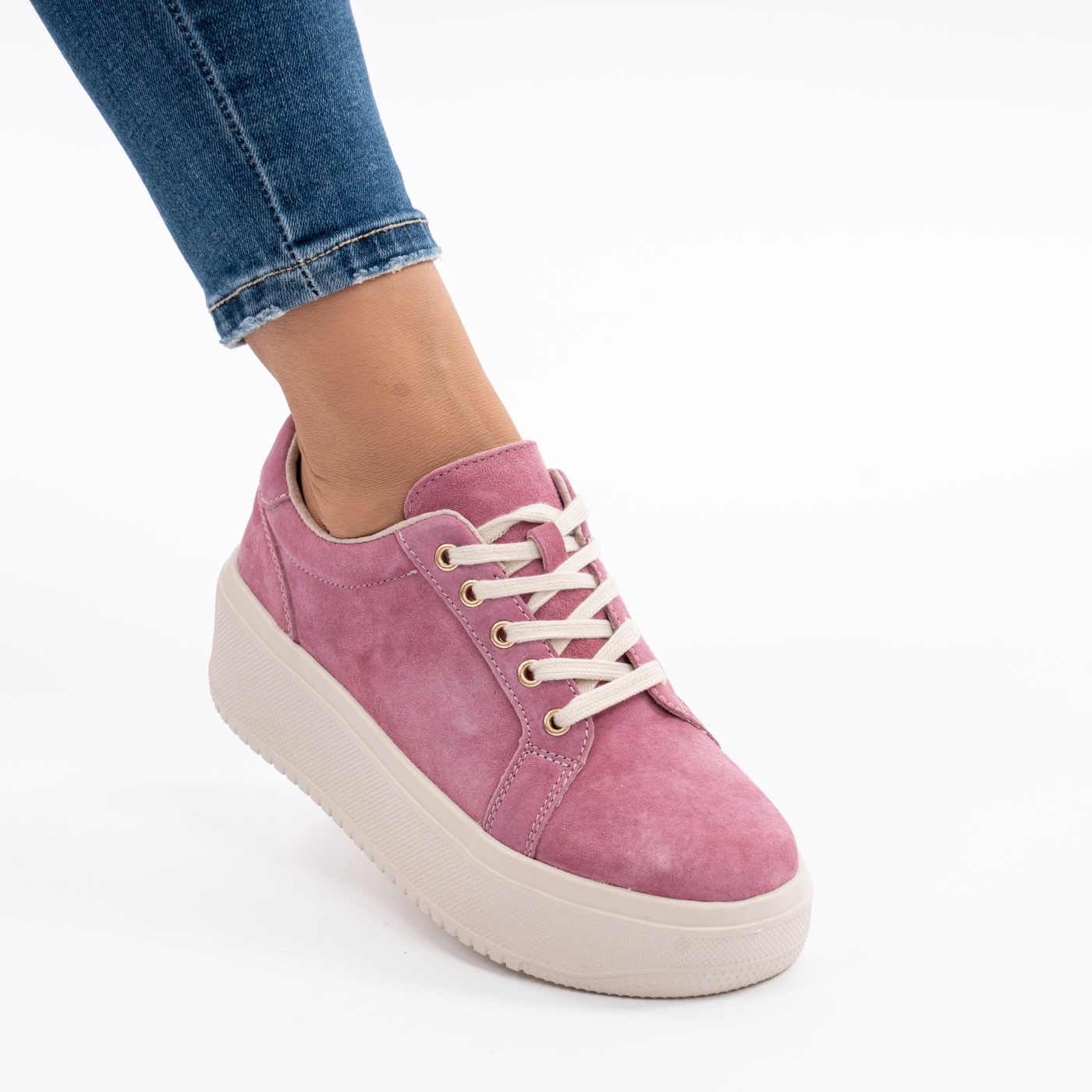 Pantofi Casual Din Piele Naturala Roz JY36810