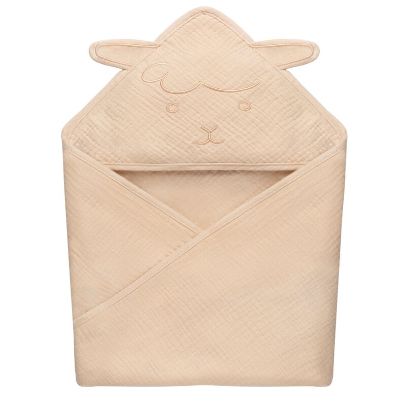 Prosop de baie, Lionelo, Cu gluga, Din muselina, 100% bumbac, 80x80 cm, Absorbtie eficienta, Bej deschis