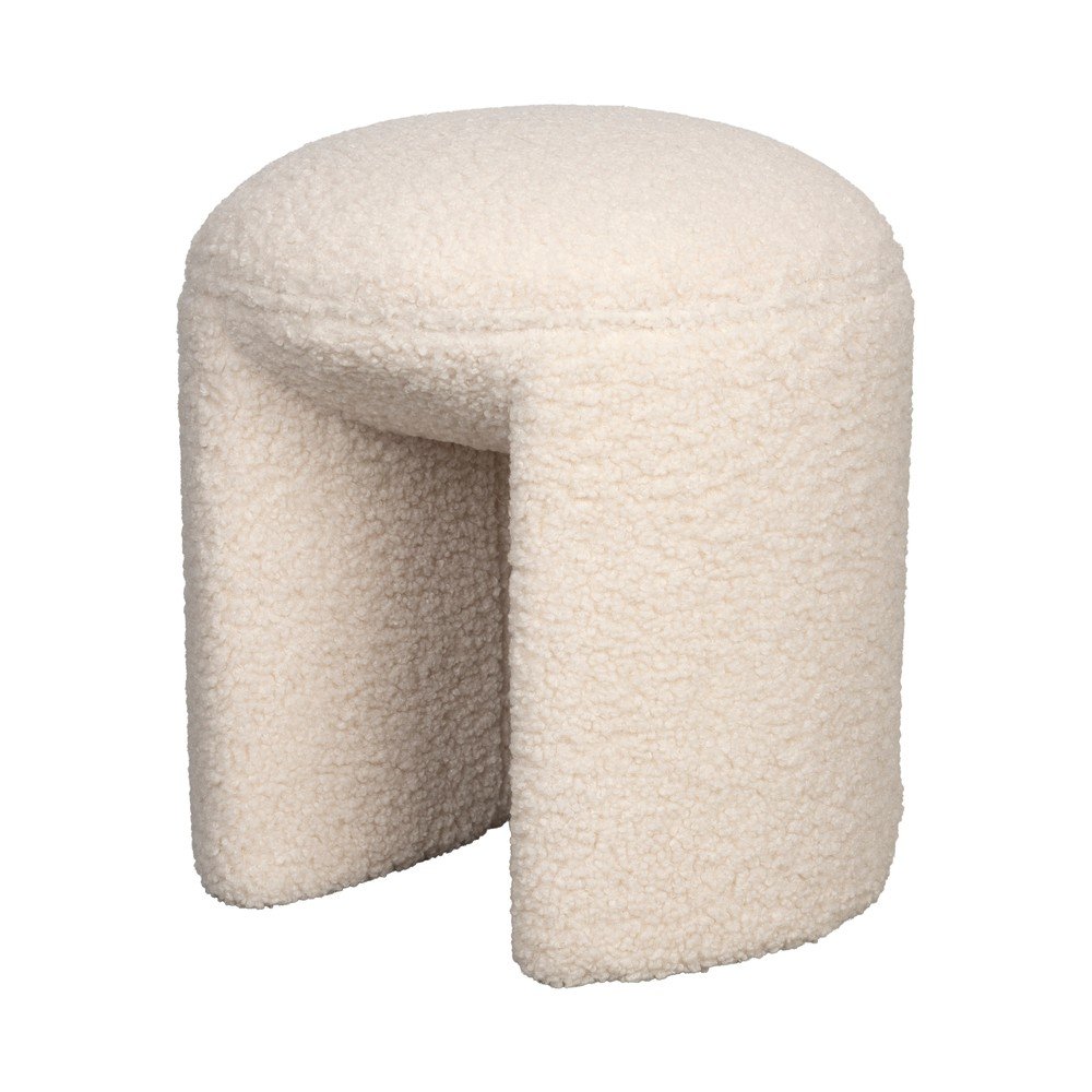 Taburet alb cu tapițerie din țesătură bouclé Aloha – Makamii