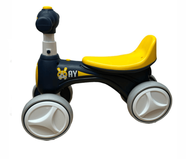 Bicicleta Go Kart Bunny fara pedale cu roti silentioase, pentru copii 1-3 ani, lumini si muzica, albastru cu galben