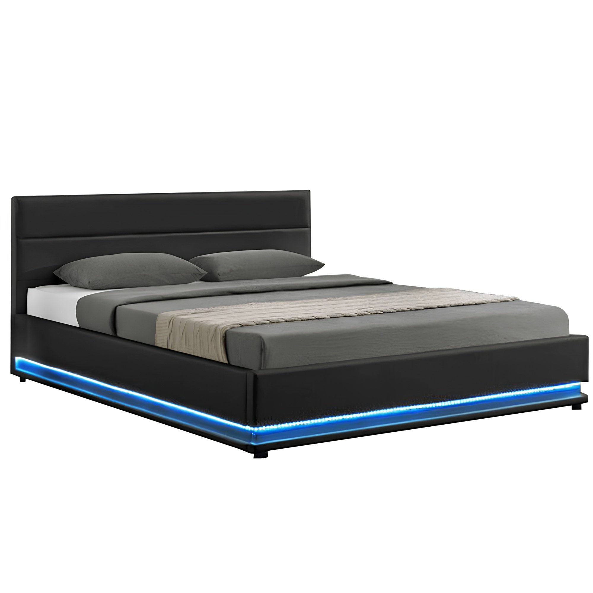 Pat matrimonial cu iluminare LED, negru