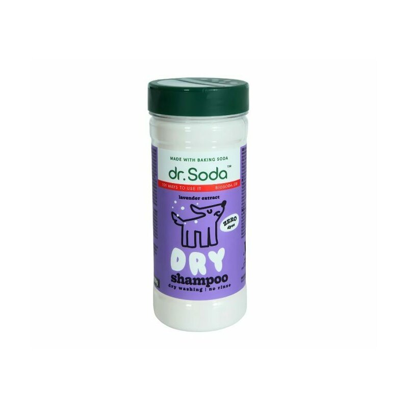 Sampon uscat pentru caini cu bicarbonat de sodiu si extract de lavanda, 350g, Dr.Soda